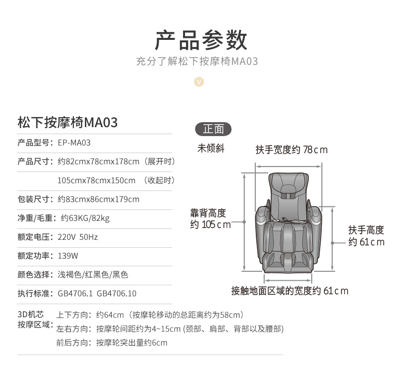 松下Panasonic按摩椅EP-MA03 黑色