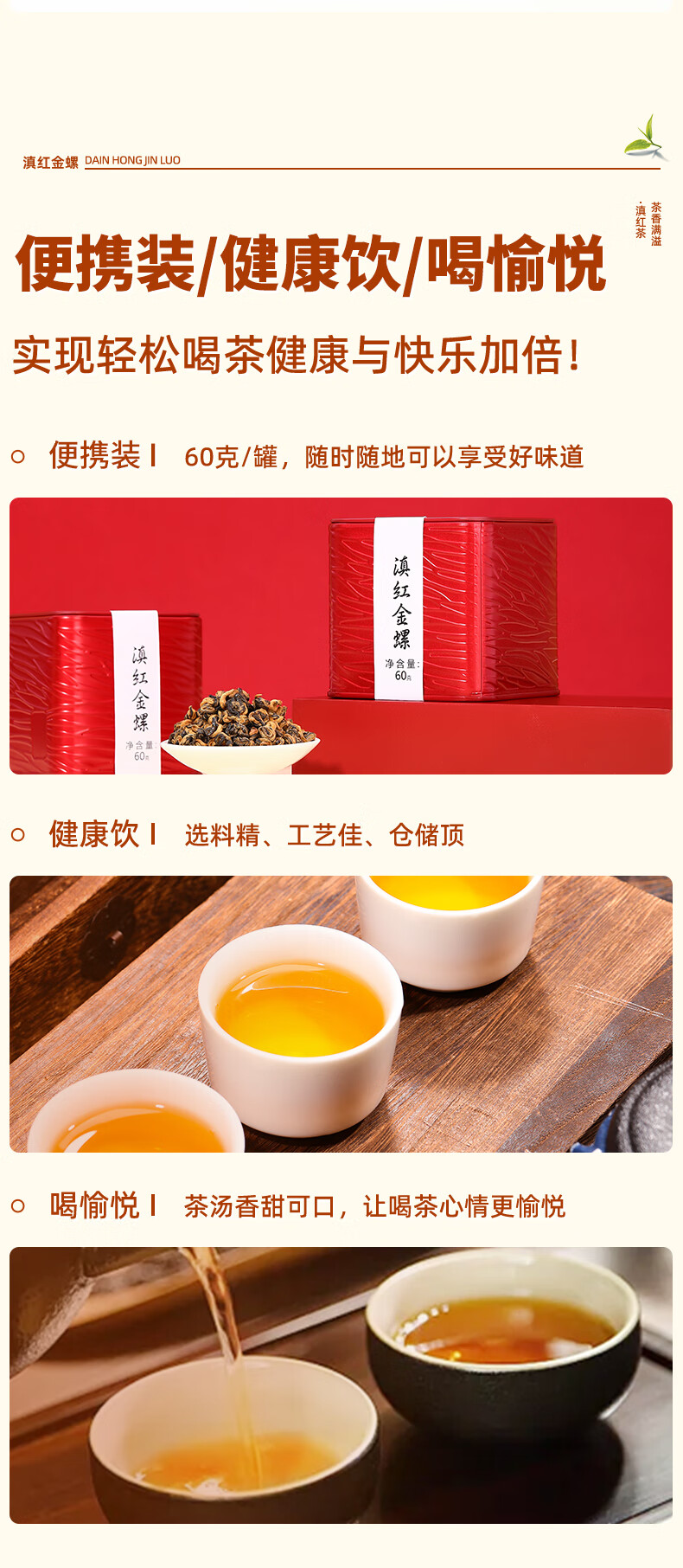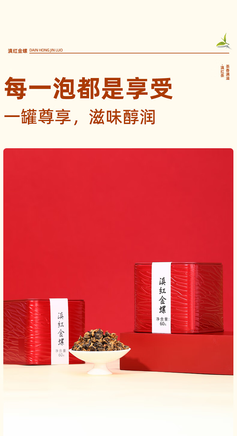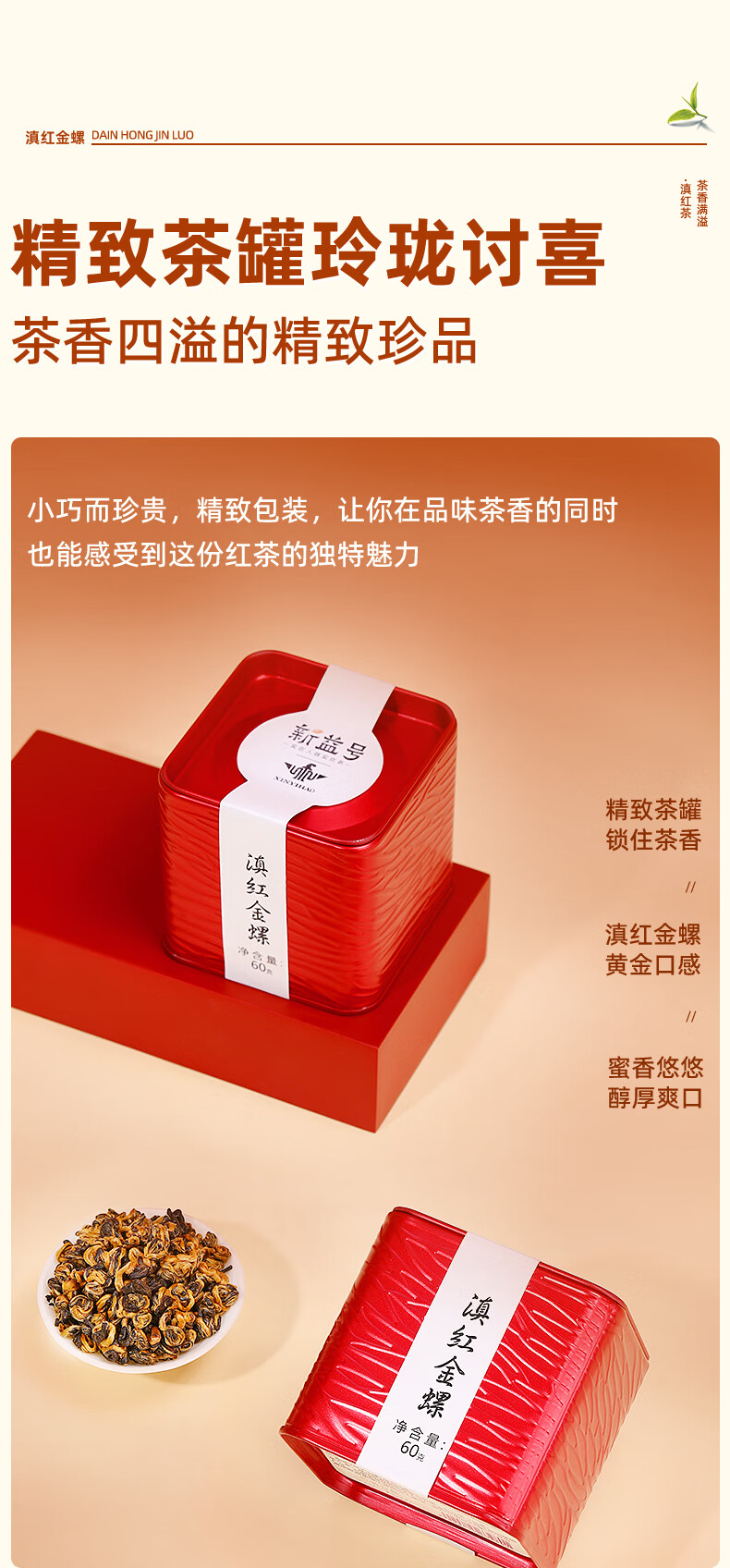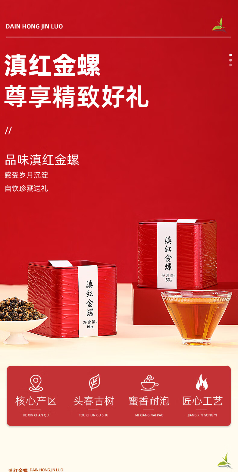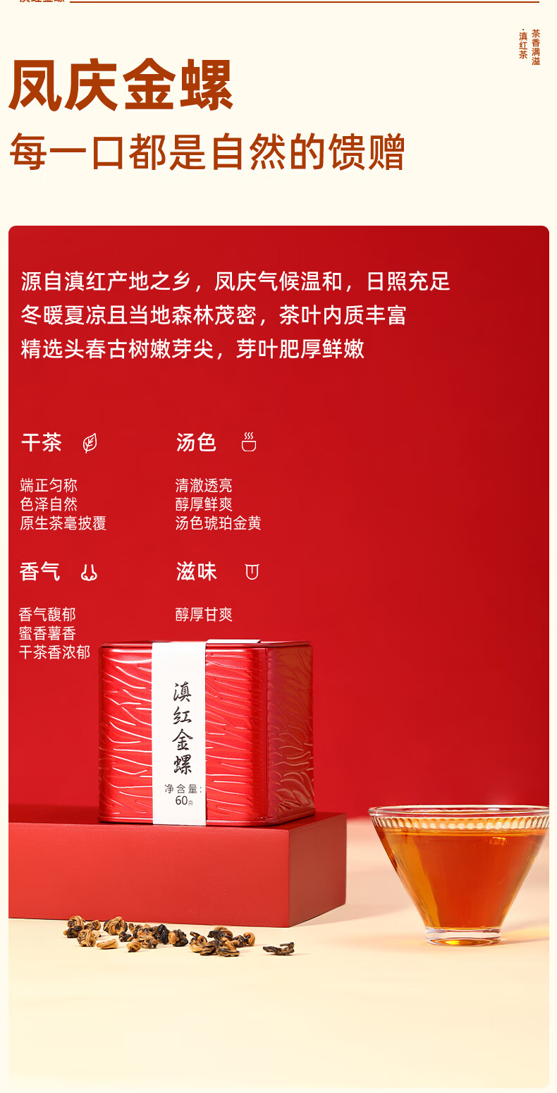 新益号 红茶云南凤庆蜜香浓香古树茶叶 滇红金螺 60g 红色(单位:罐)