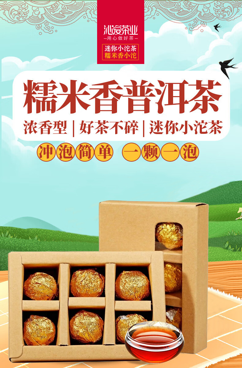 新益号 普洱茶熟茶小沱茶小包装茶礼盒 糯香龙珠 48g 黄色(单位:盒)