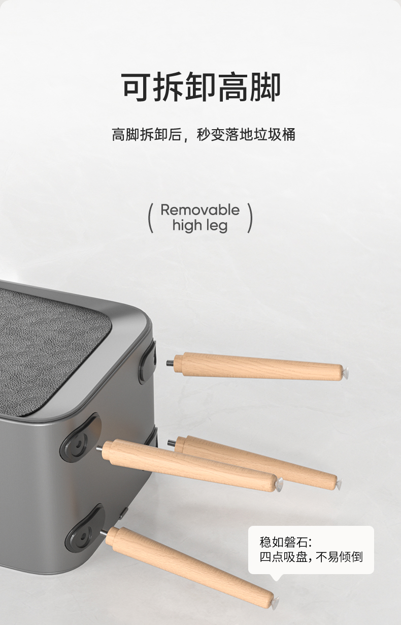 洁安惠 带木腿智能垃圾桶 9716DU 20升充电款 炭灰色(单位:台)