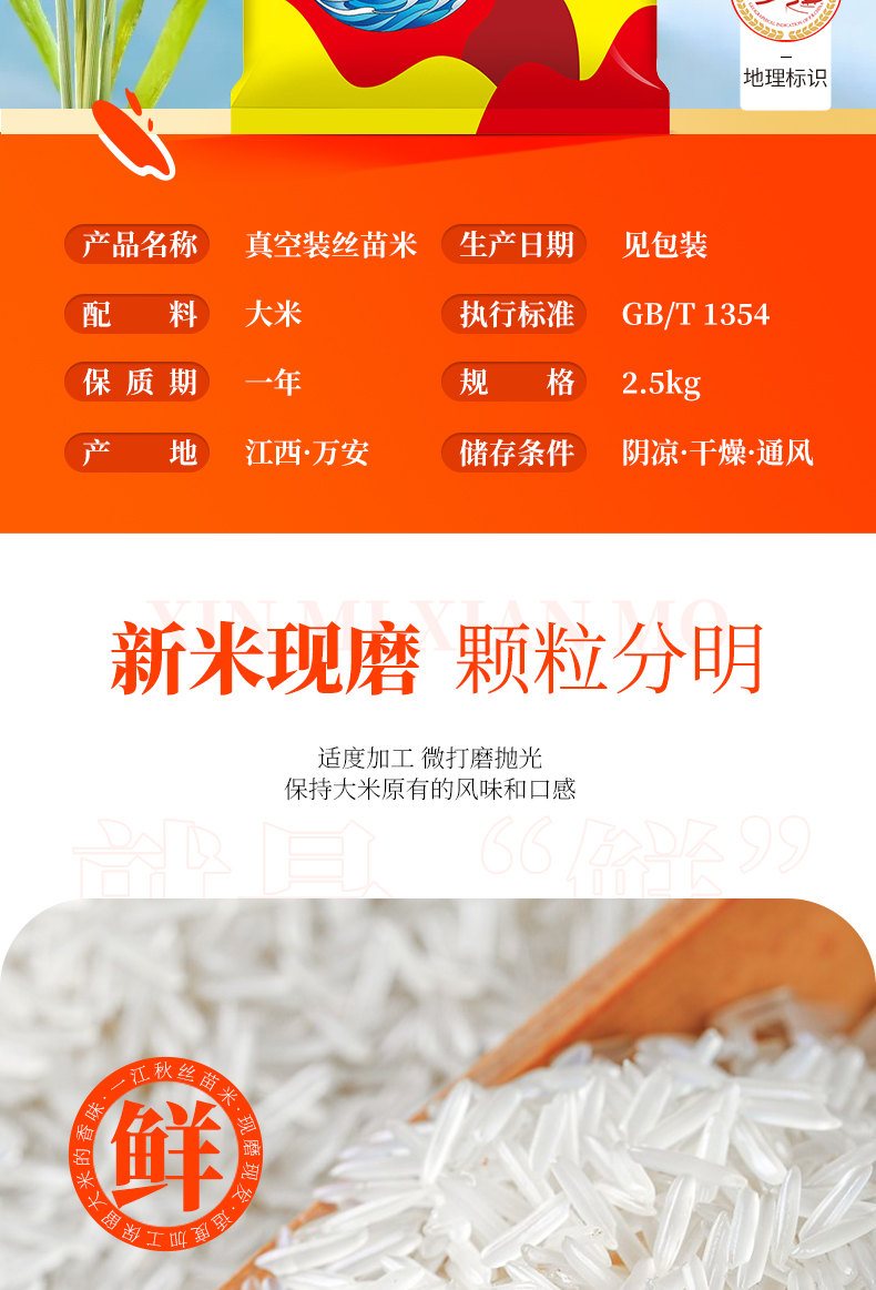 一江秋 新米 江南硒米 南方籼米 长粒香米 井冈丝苗米 2.5kg 混色(单位:袋)