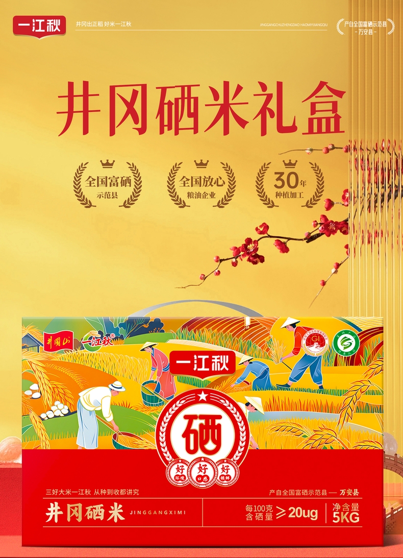 一江秋 富硒臻稻 南方香米 真空锁鲜 井冈硒米礼盒 5kg 混色(单位:盒)