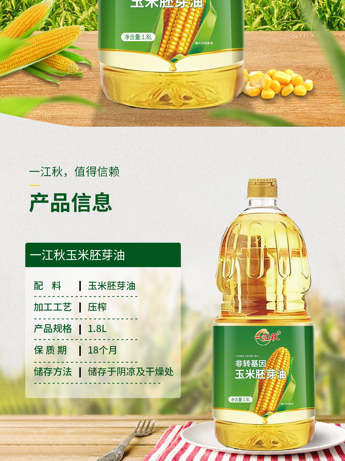 一江秋 物理压榨一级 浓香 食用油 玉米胚芽油 1.8L 混色(单位:桶)