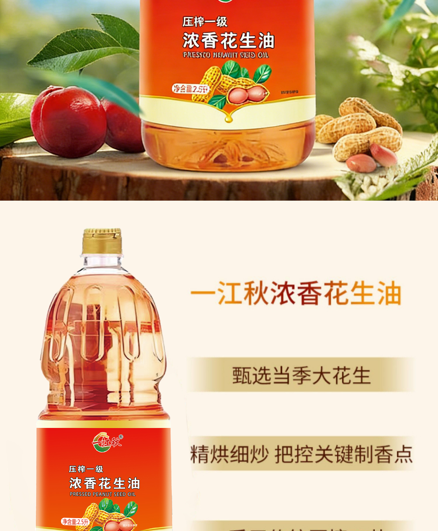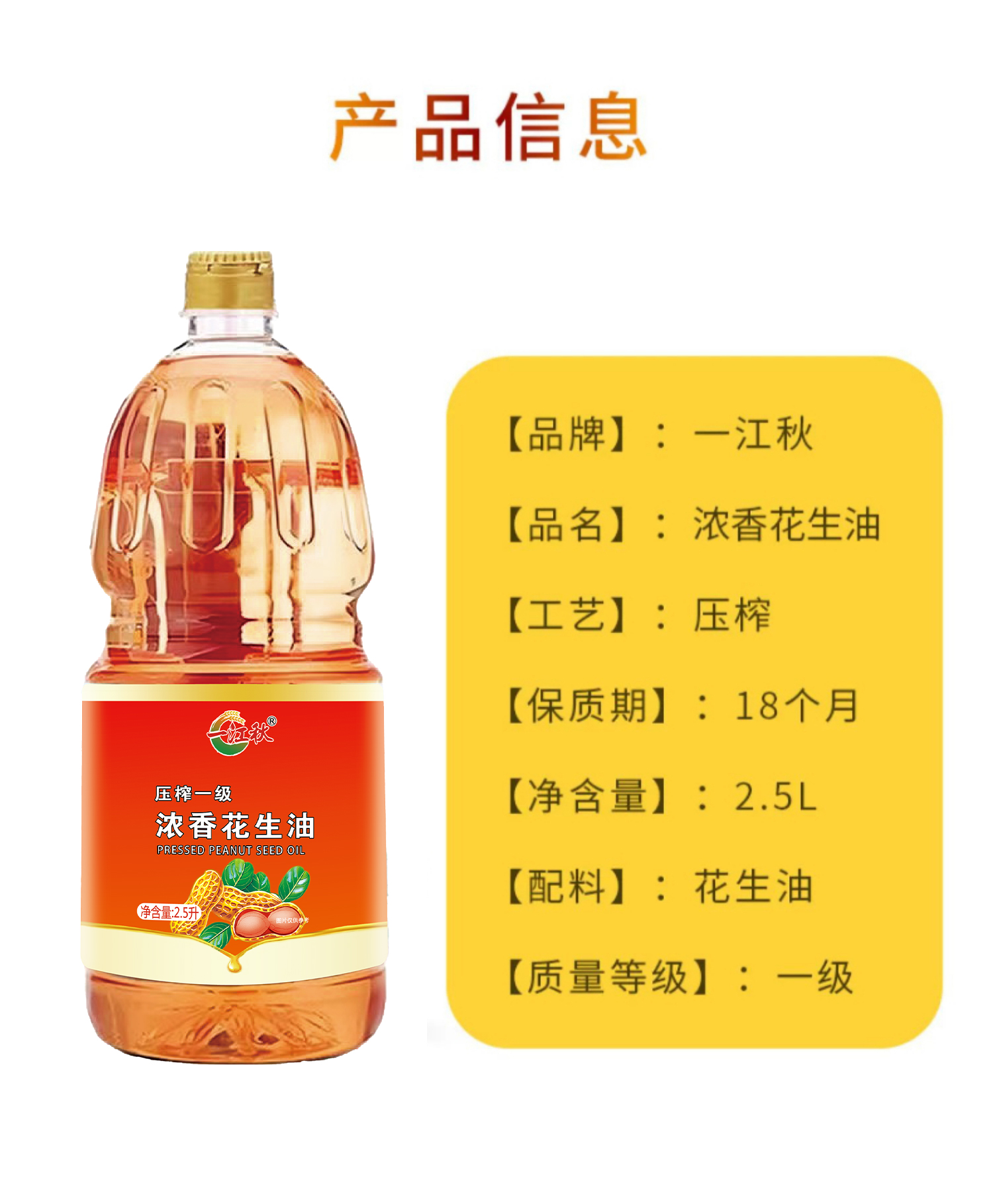 一江秋 物理压榨 浓香 食用油 压榨一级花生油 2.5L 混色(单位:桶)