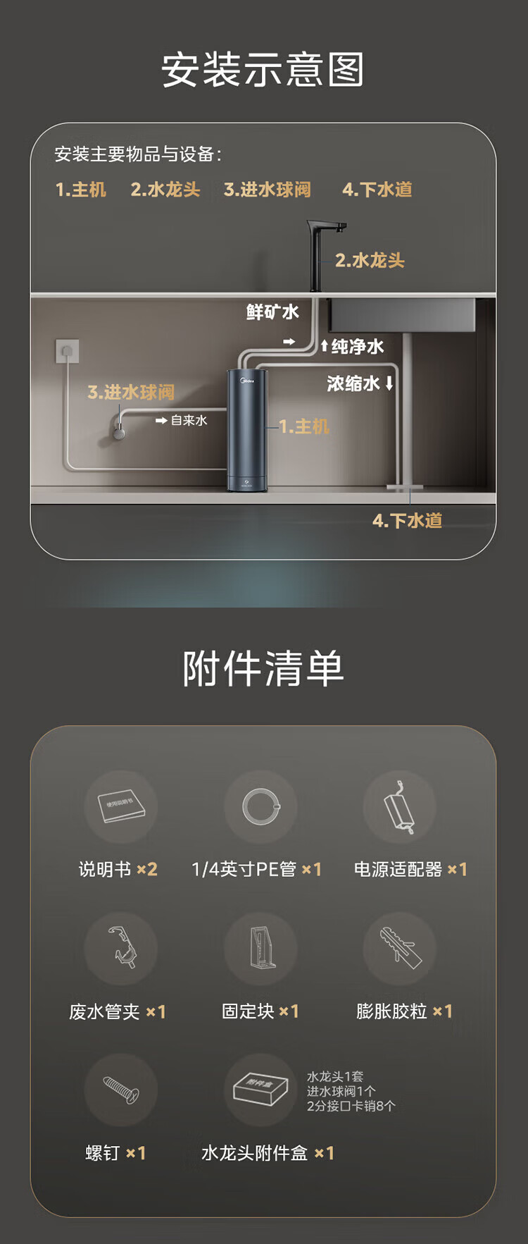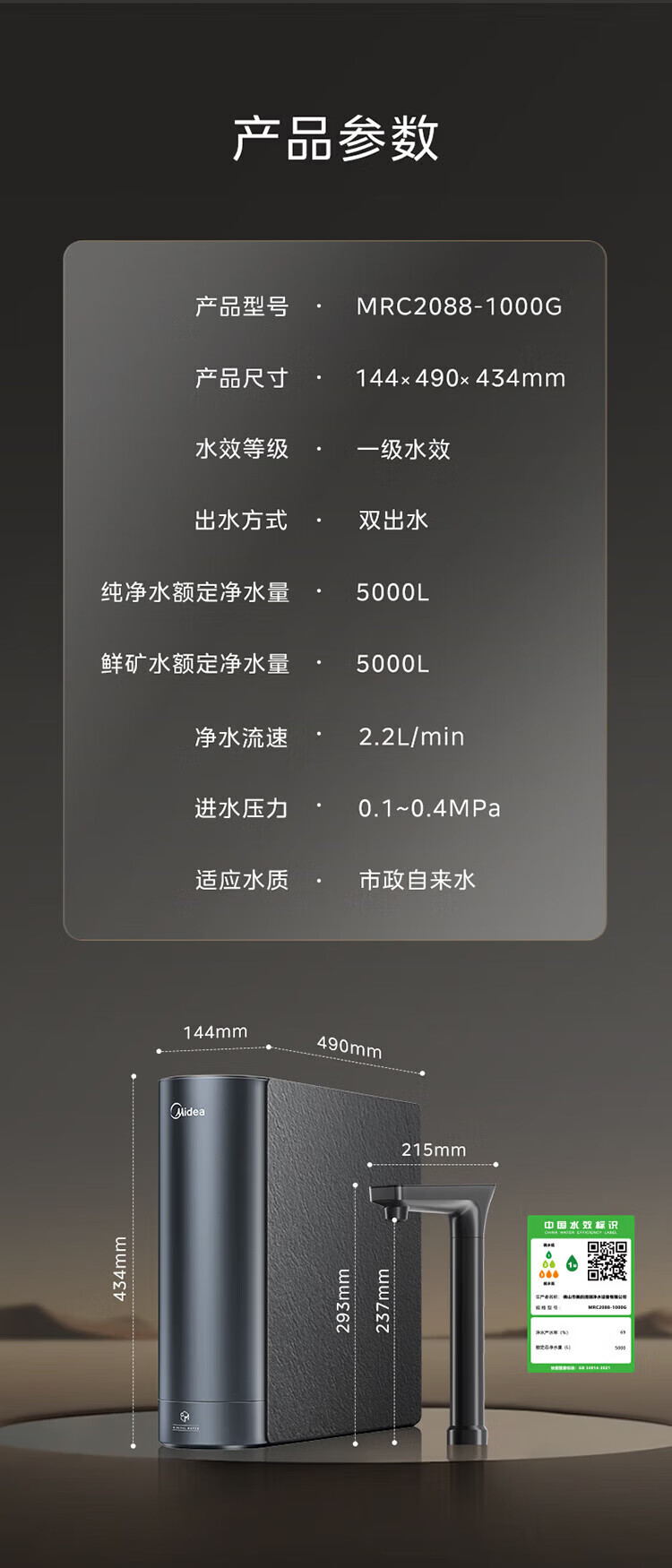 美的(Midea) 净水器 MRC2088-1000G 1000G 青灰色(单位:台)