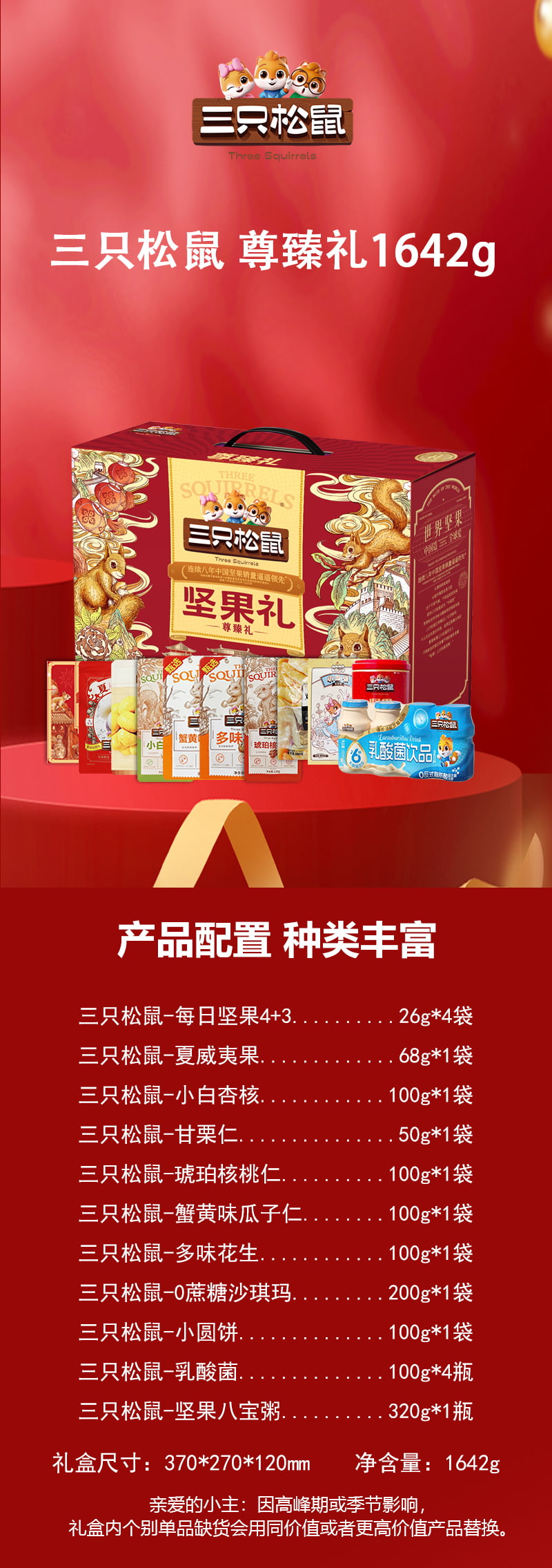 三只松鼠 坚果礼盒 尊臻礼 1642g 红色(单位:盒)