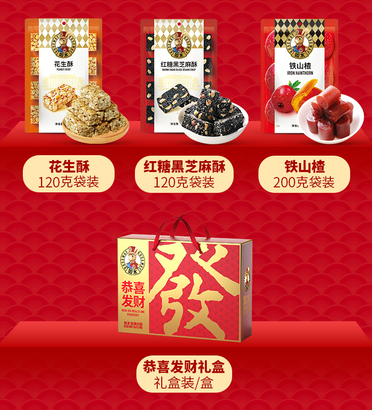 如水 坚果礼盒 恭喜发财 980g 红色(单位:盒)
