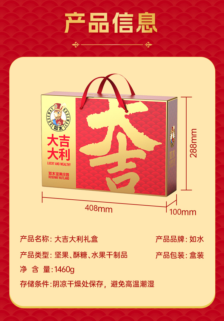 如水 坚果礼盒 大吉大利 1460g 红色(单位:盒)