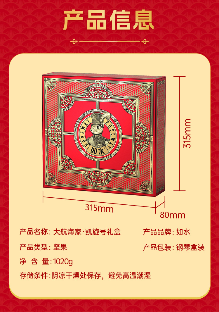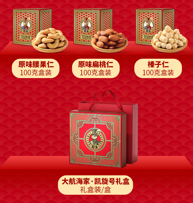 如水 坚果礼盒 大航海家·凯旋号 1020g 红色(单位:盒)