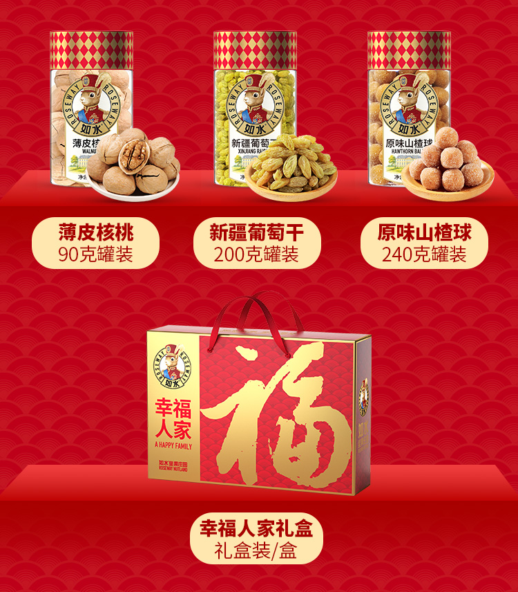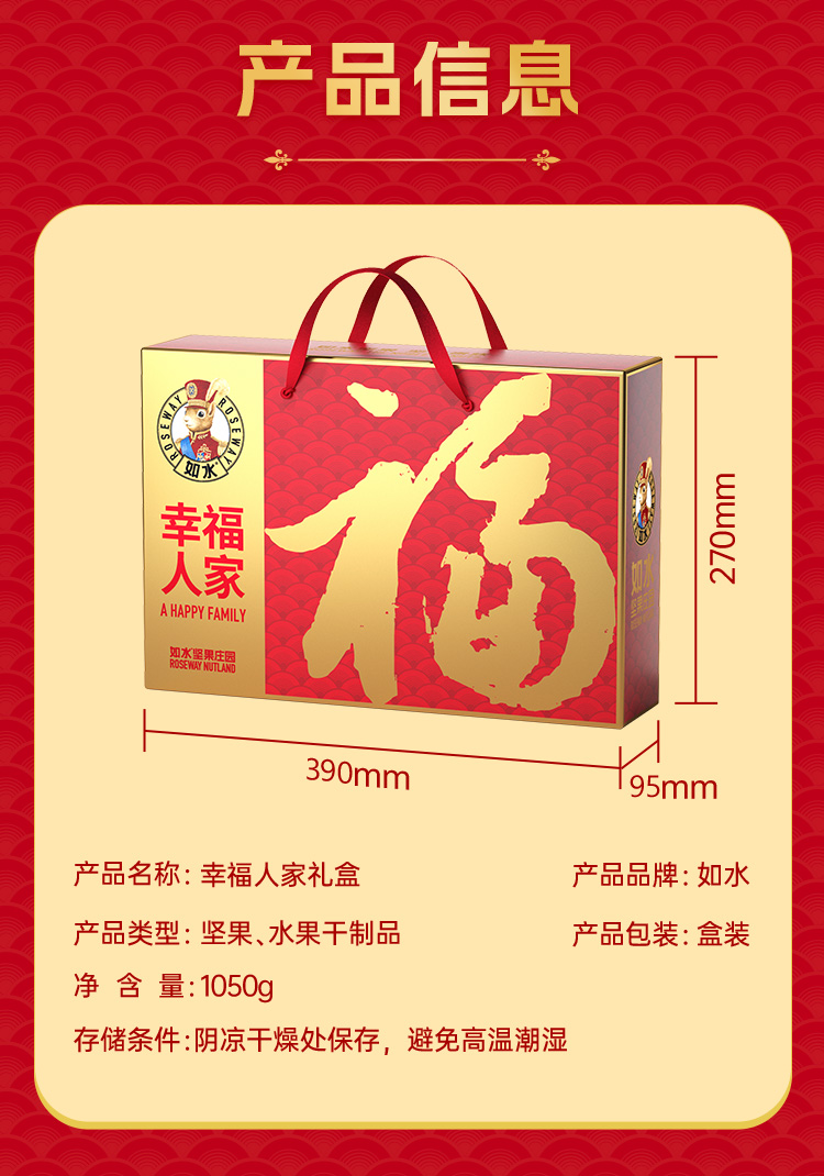 如水 坚果礼盒 幸福人家 1050g 红色(单位:盒)