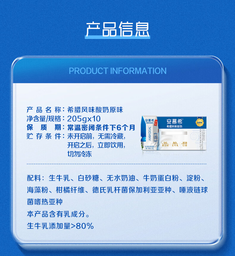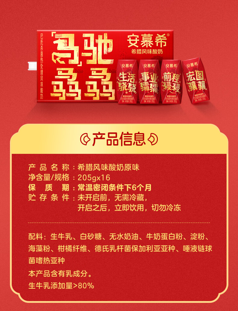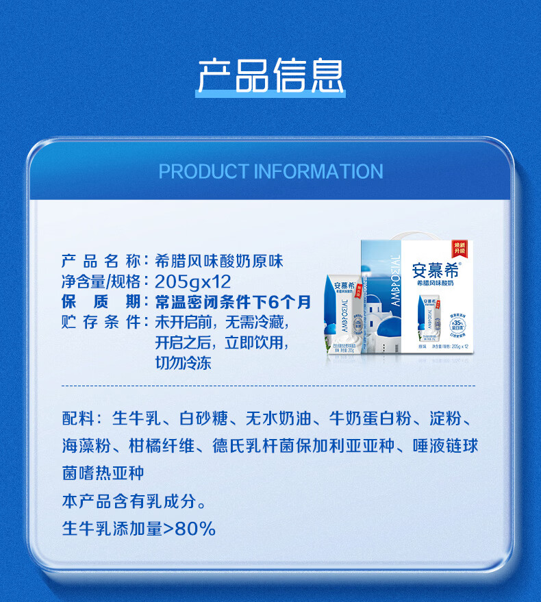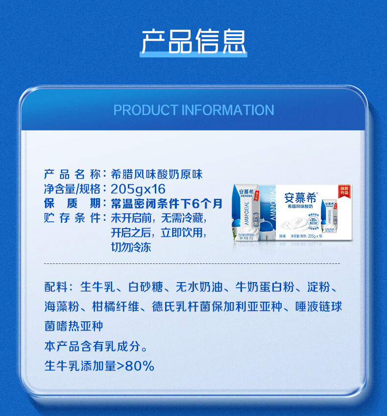 伊利 安慕希常温酸奶 原味(乐享装) 205g*16盒 混色(单位:盒)