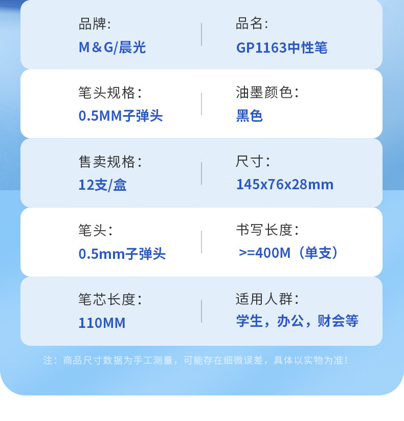 晨光(M&G) 按动中性笔 GP1163A 0.5mm12支/盒 黑色(单位:盒)