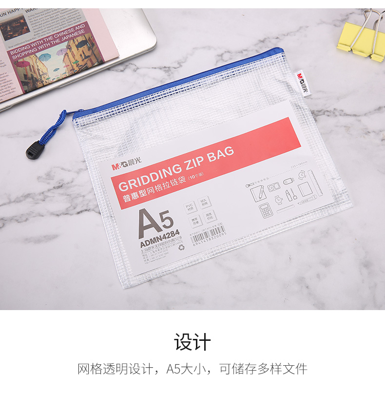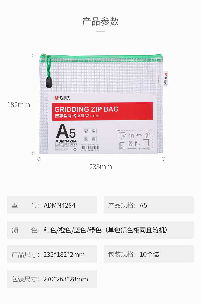 晨光(M&G) 拉链袋网格普惠型 ADMN4284 A5 10个装 混色(单位:包)