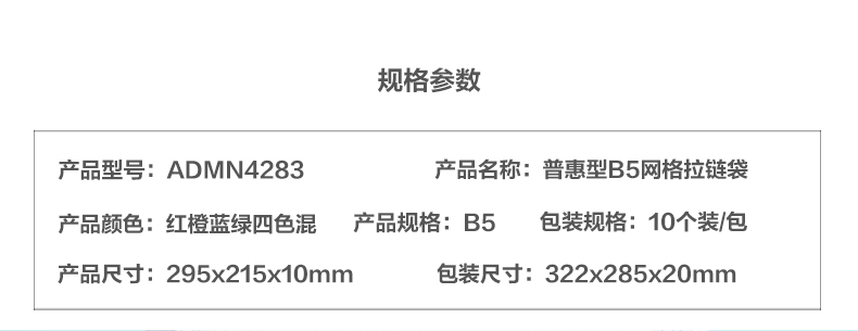 晨光(M&G) 拉链袋网格普惠型 ADMN4283 B5 10个装 混色(单位:包)