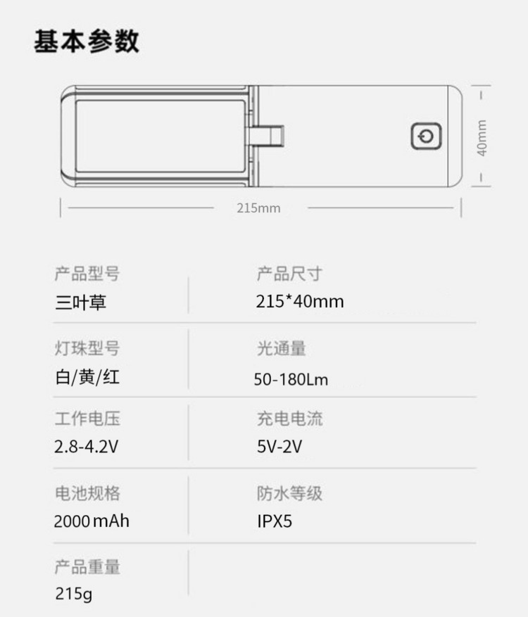 徽羚羊 云烛 三叶草营地灯 充电款 2000mAh HLY-LYD-23004 180g*1 米色(单位:个)