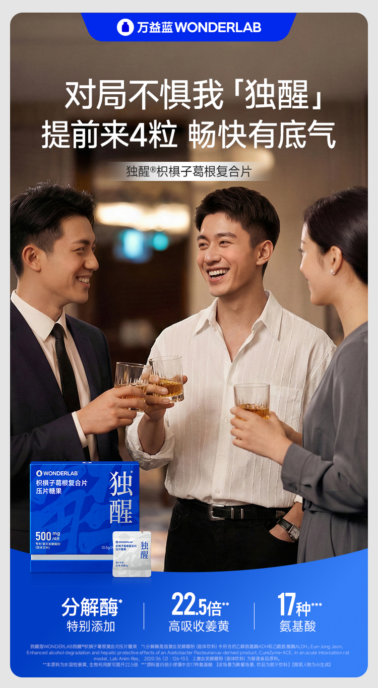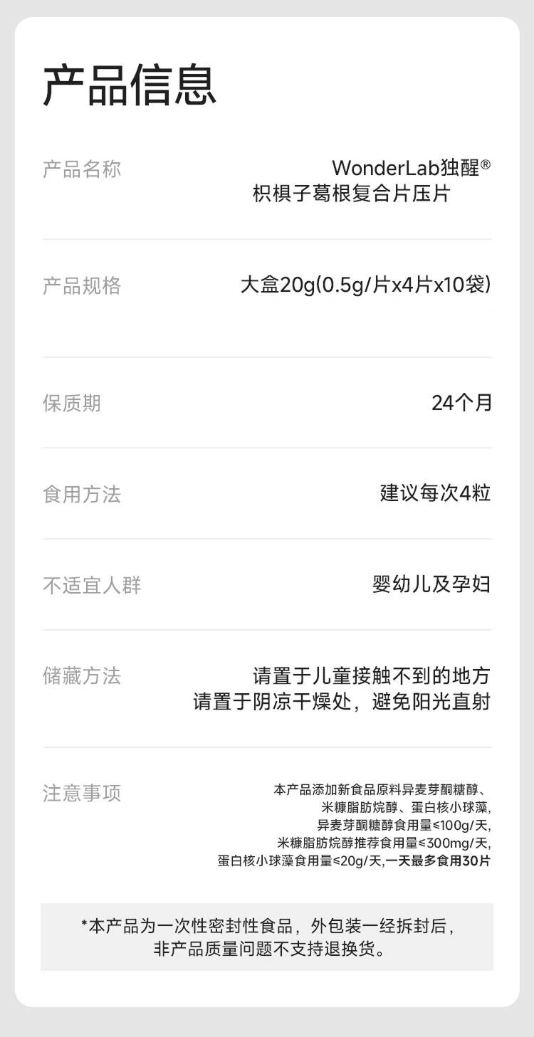 WonderLab 独醒枳椇子葛根复合片 解酒 4片/袋x10袋/盒 宝石蓝(单位:盒)