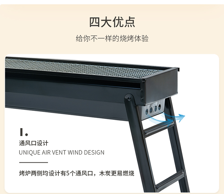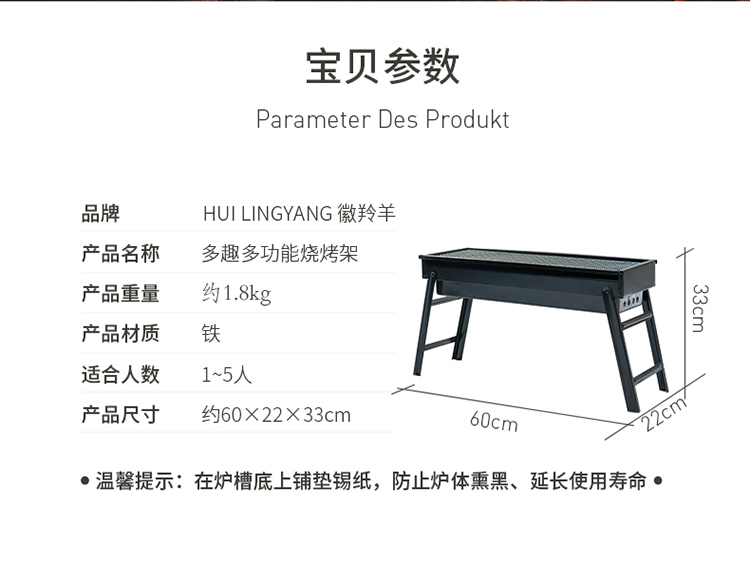 徽羚羊 云炙户外中型烧烤炉 黑色 HLY-KL002 60*22*33cm 黑色(单位:个)