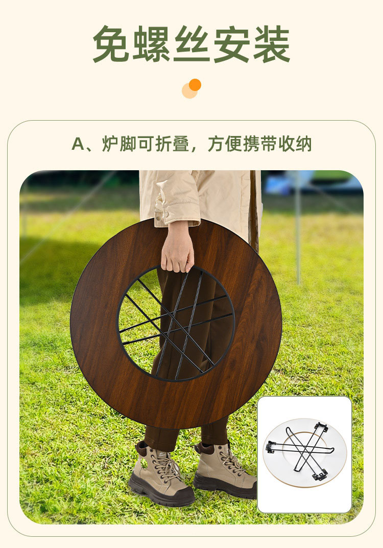 徽羚羊 云炙 户外圆桌款 围炉煮茶桌 (不配壶和茶具) HLY-SKL-24003 62*62*47cm(直径*高度) 胡桃木纹(单位:个)