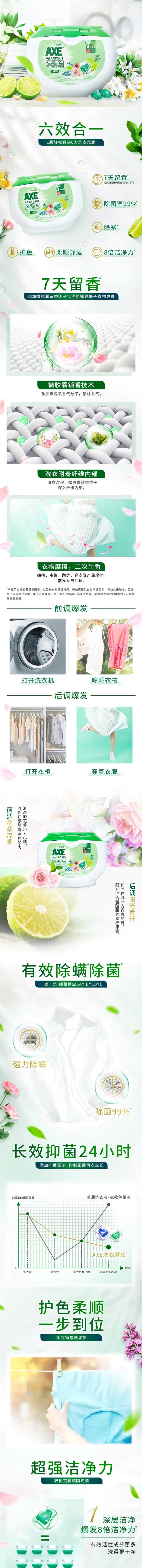 斧头牌(AXE) 6合1 花萃淳香 洗衣凝珠 25颗*2盒 绿色(单位:组)