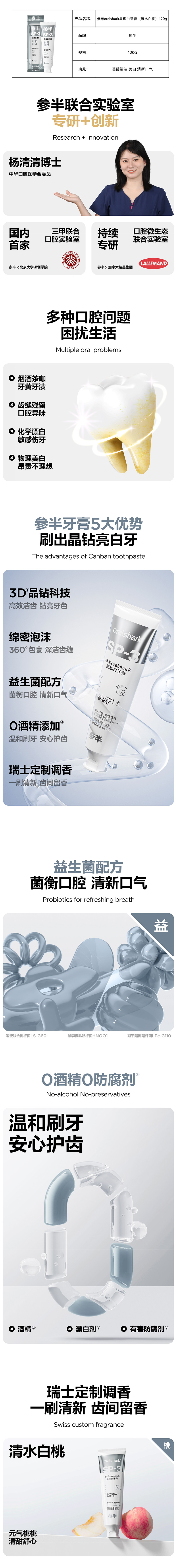 参半(NYSCPS) 星璨白 清水白桃 牙膏 120g*3支 珍珠灰(单位:组)