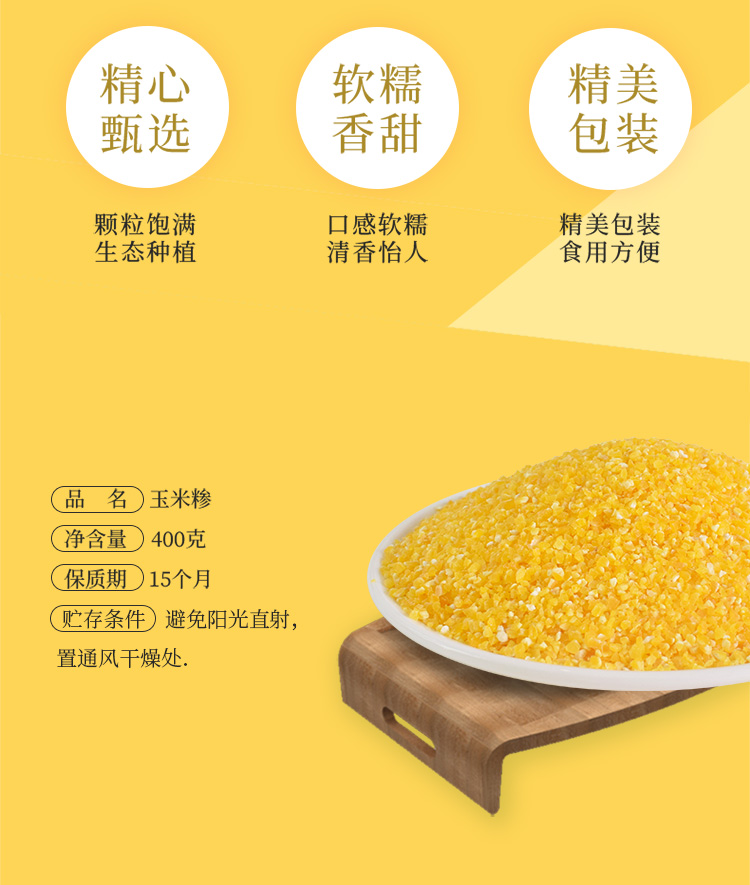 姚朵朵 谷物杂粮 玉米糁(真空包装) 400g*1袋 混色(单位:袋)