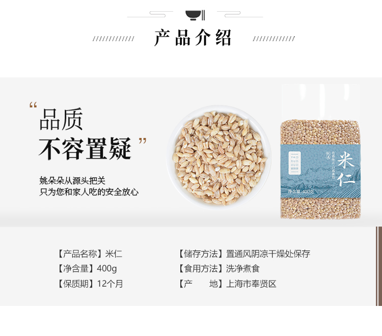 姚朵朵 谷物杂粮 米仁(真空包装) 400g*1袋 混色(单位:袋)