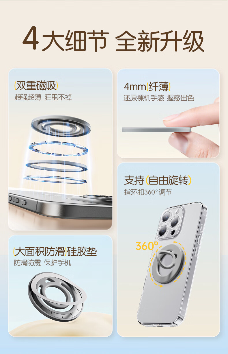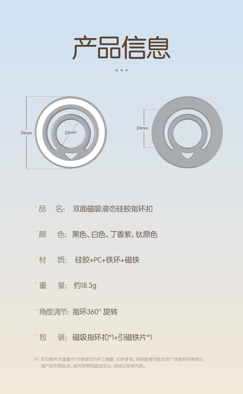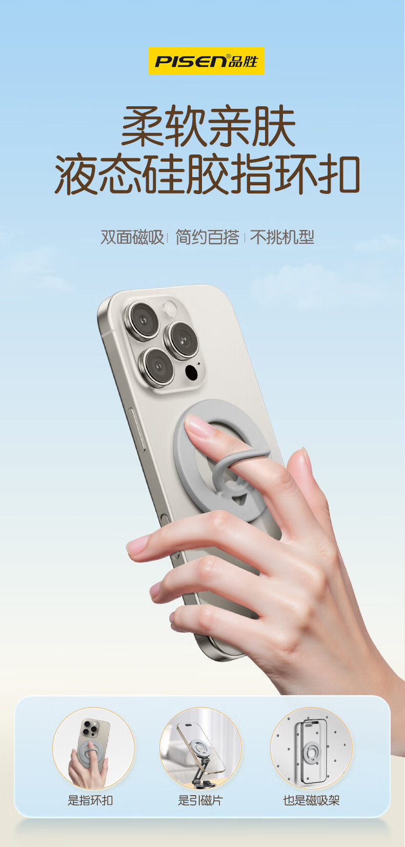 品胜(PISEN) 磁吸硅胶指环扣 PJ01 19g 黑色(单位:件)