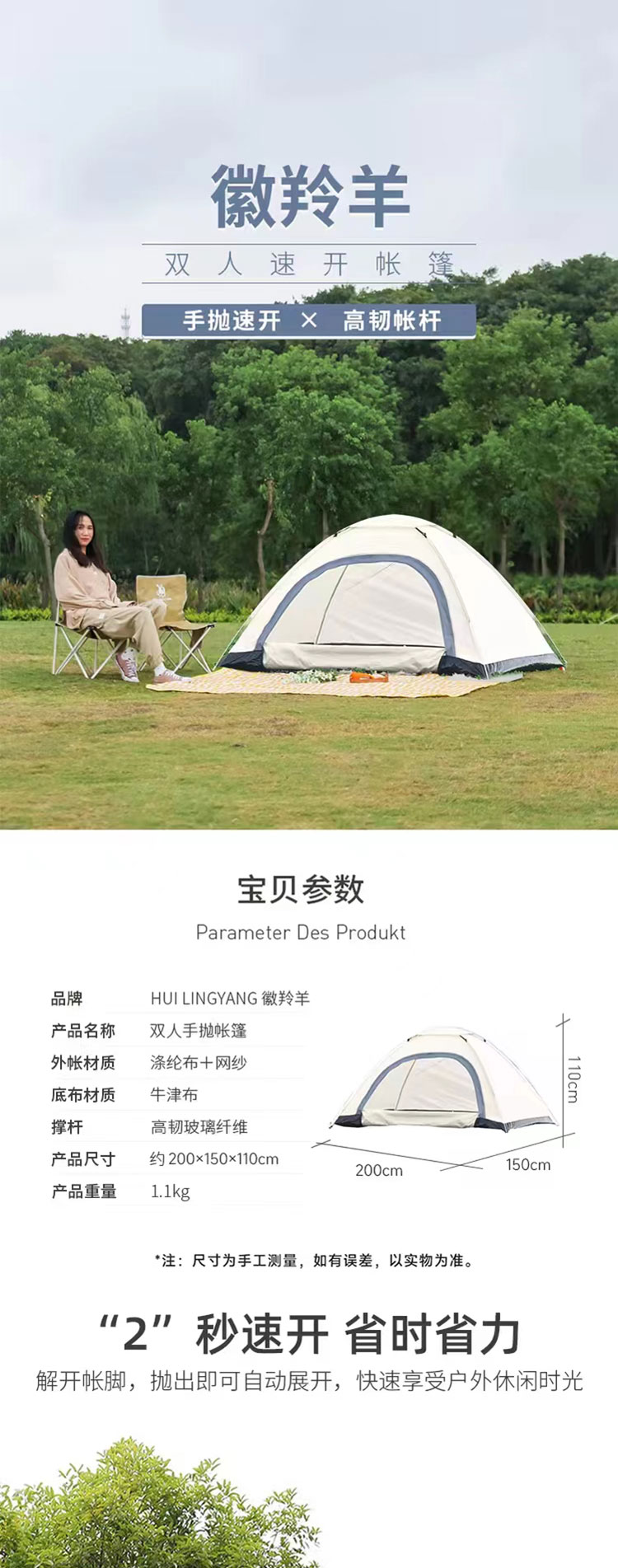 徽羚羊 云絮 基础款 全自动速开帐篷2人款-流沙金 HLY-08802 展开:200*150*110cm 流沙金(单位:个)