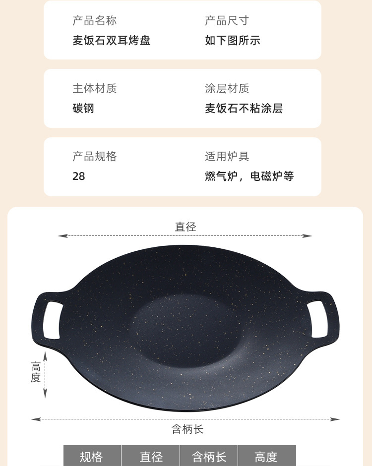 徽羚羊 云烹 麦饭石烤肉盘28cm HLY-SK-23001 480克 黑色 黑色(单位:个)
