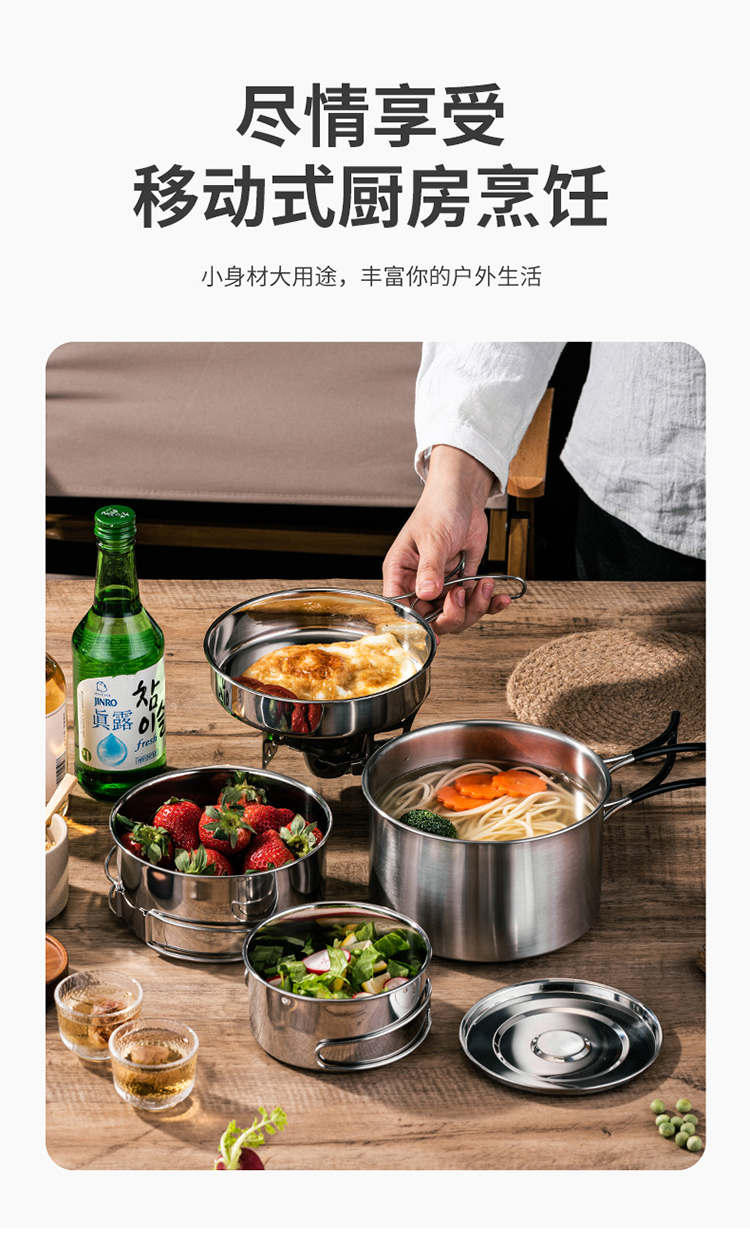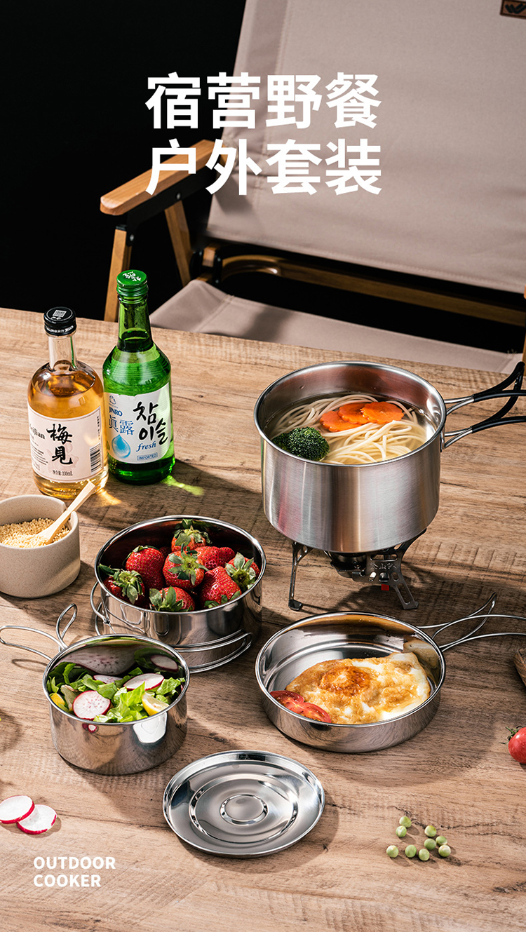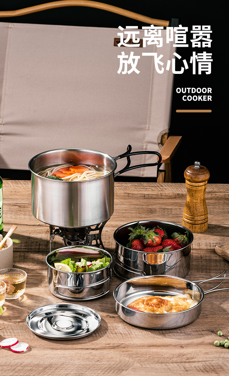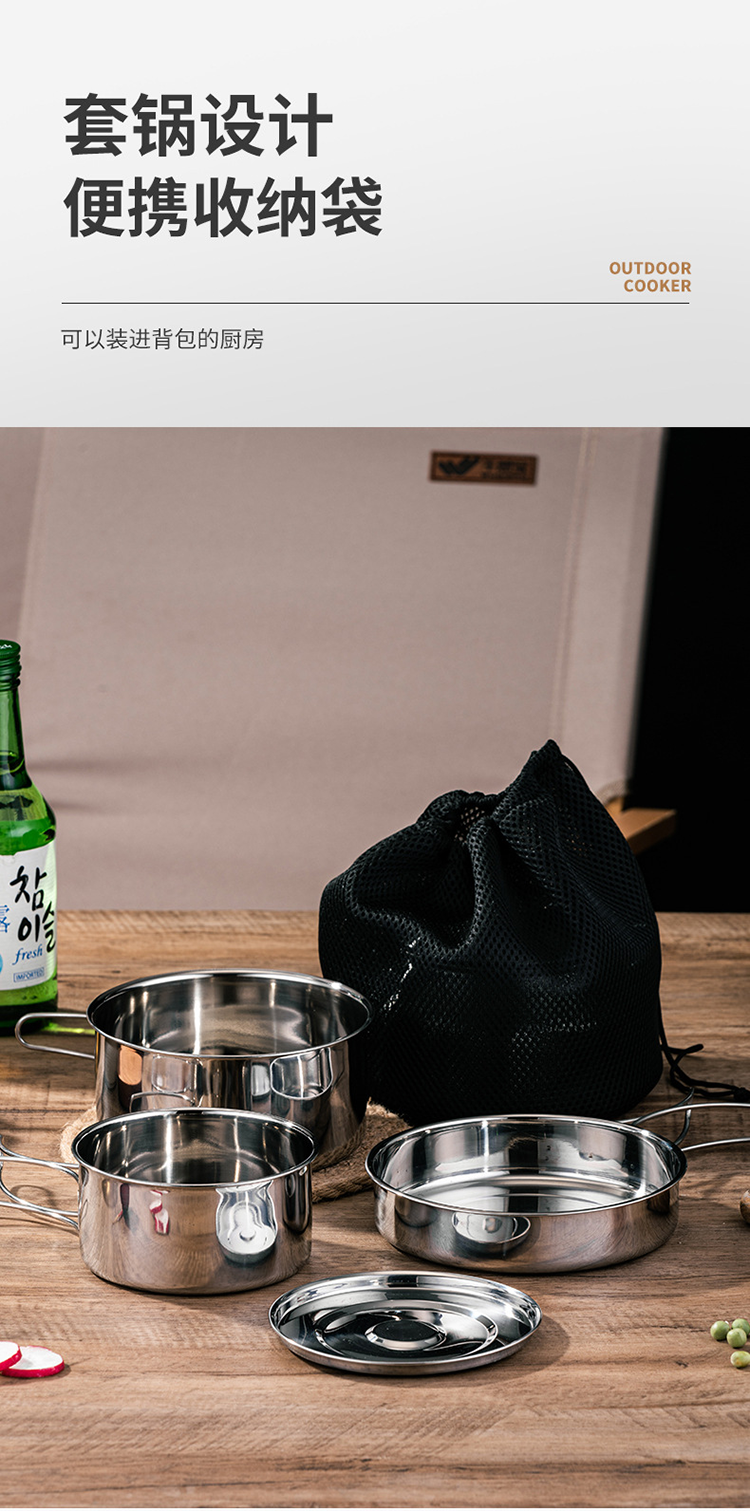 徽羚羊 云烹户外不锈钢锅具四件套 HLY-GJ-24001 0.4kg 颜色 银色(单位:个)