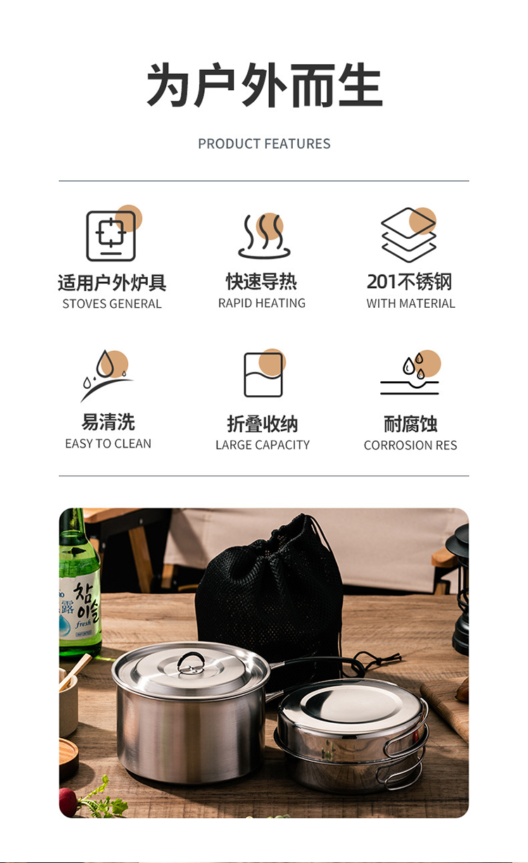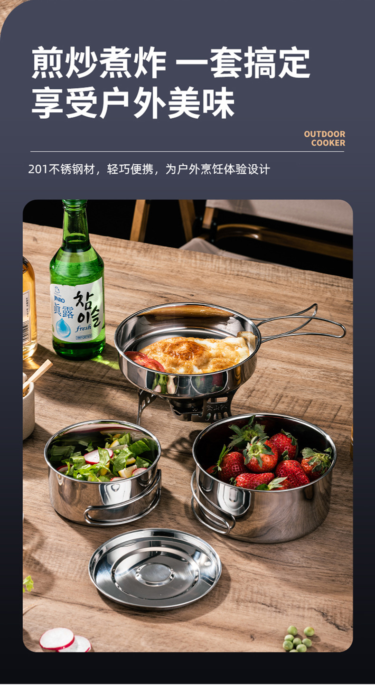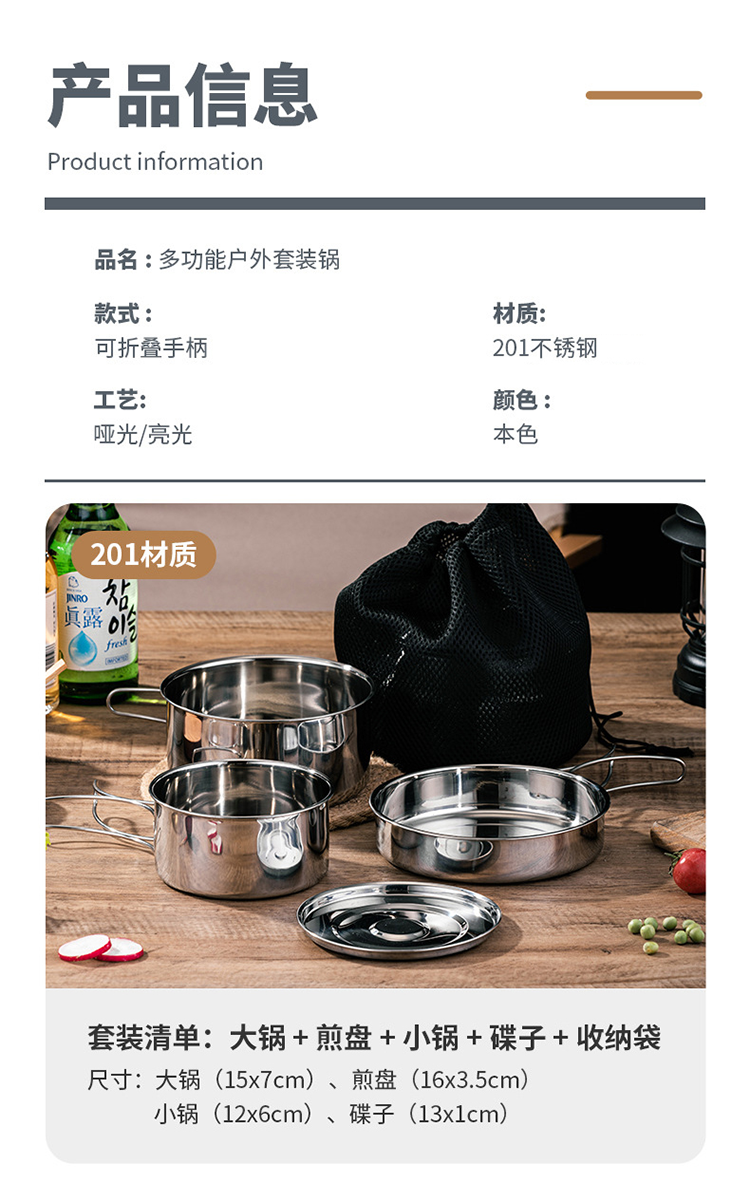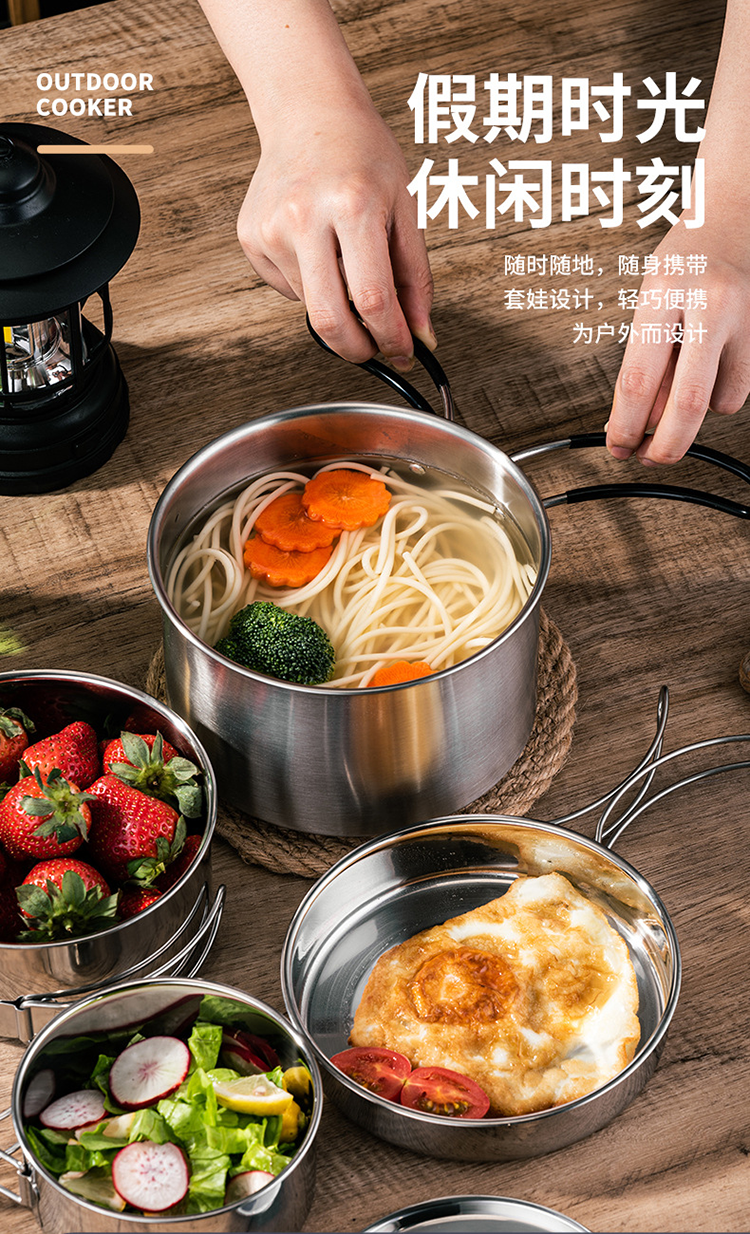 徽羚羊 云烹户外不锈钢锅具四件套 HLY-GJ-24001 0.4kg 颜色 银色(单位:个)