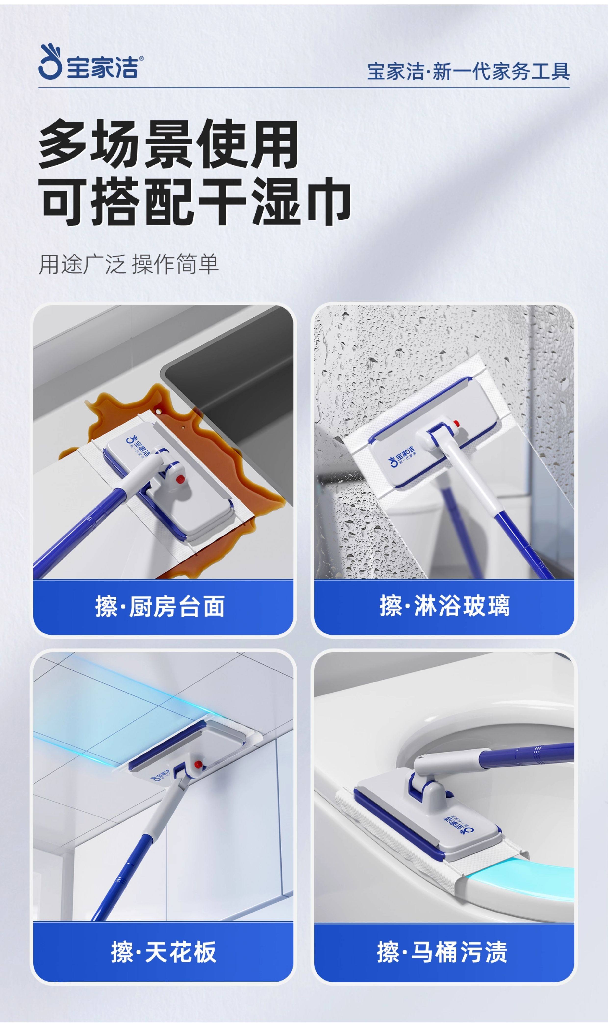 宝家洁(BAOJIAJIE) 鲨鱼齿夹布拖 XE05 +2片静电除尘绒布+云吸绒布1包 白色(单位:组)