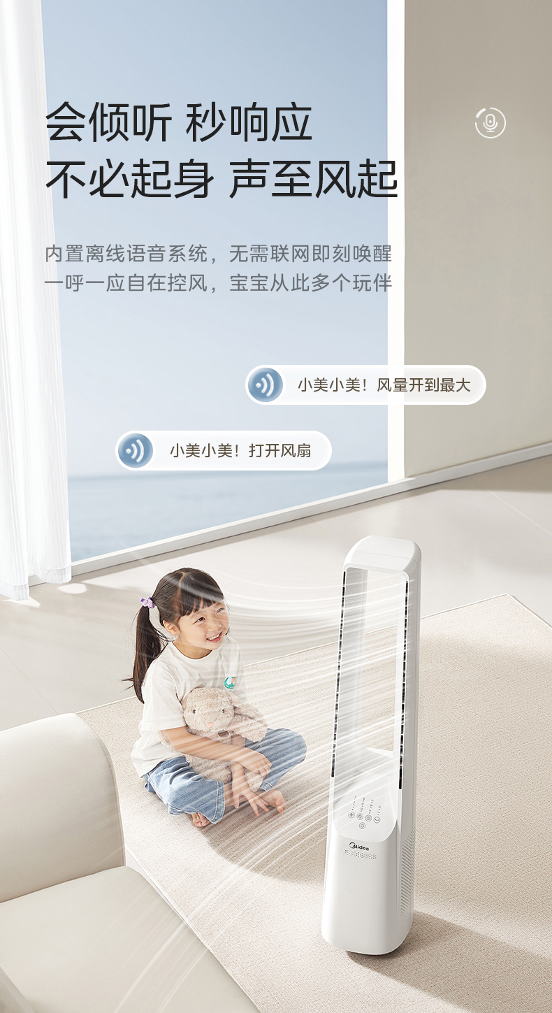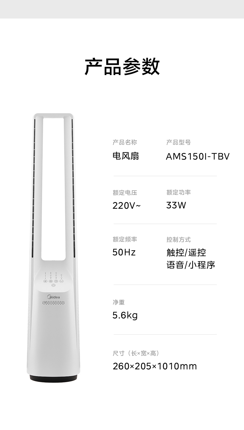 美的(Midea) 塔式无叶风扇 AMS150I-TBV 33W 白色(单位:台)