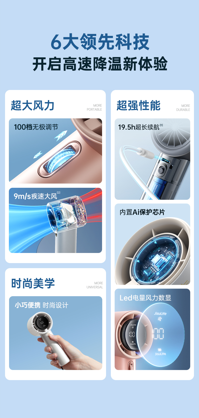 几素(JISULIFE) 手持小风扇塑胶版 Handheld Fan Pro1 5000mAh 灰蓝色(单位:个)