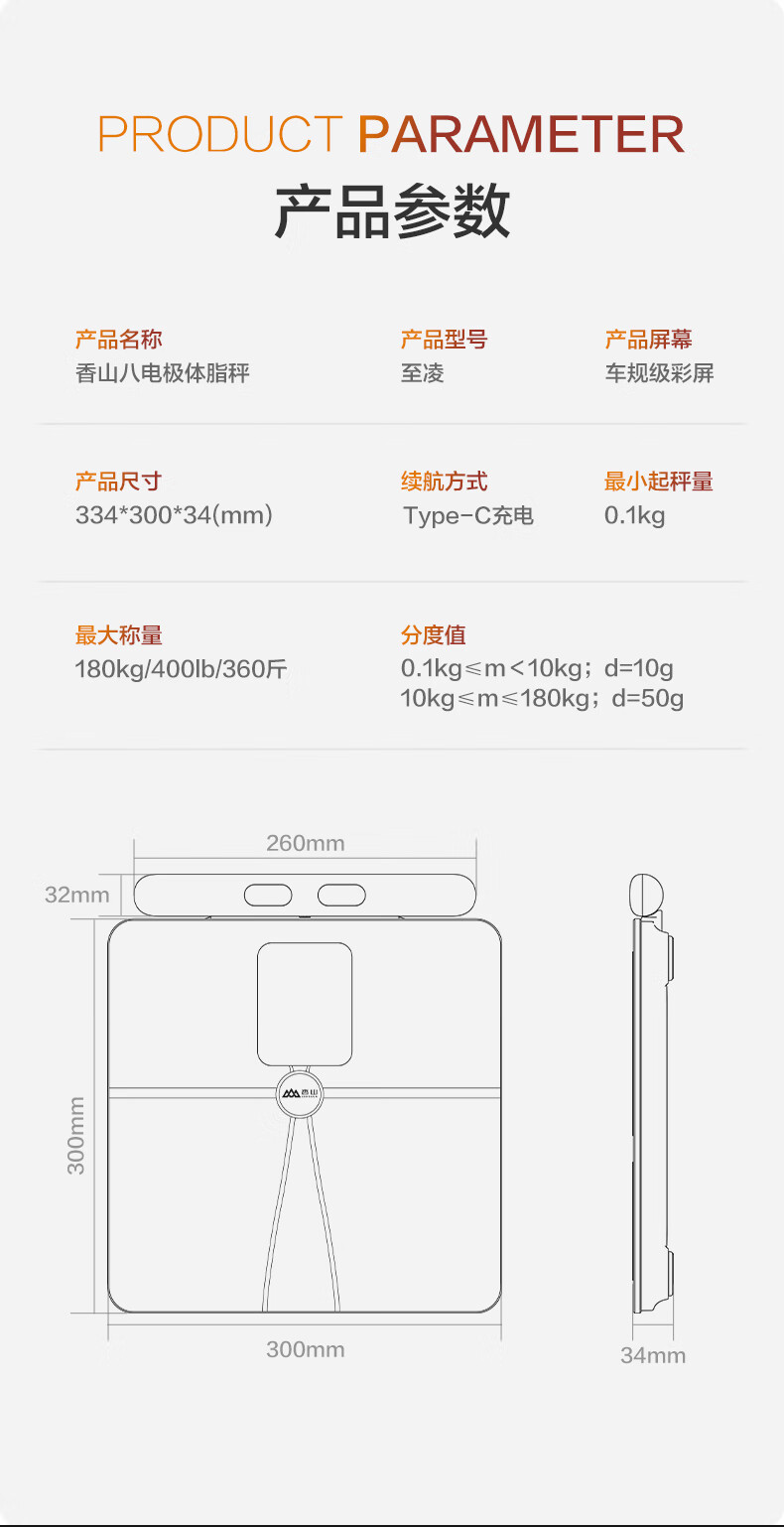 香山 体脂秤 iF2820AR Type-C充电 白色(单位:台)