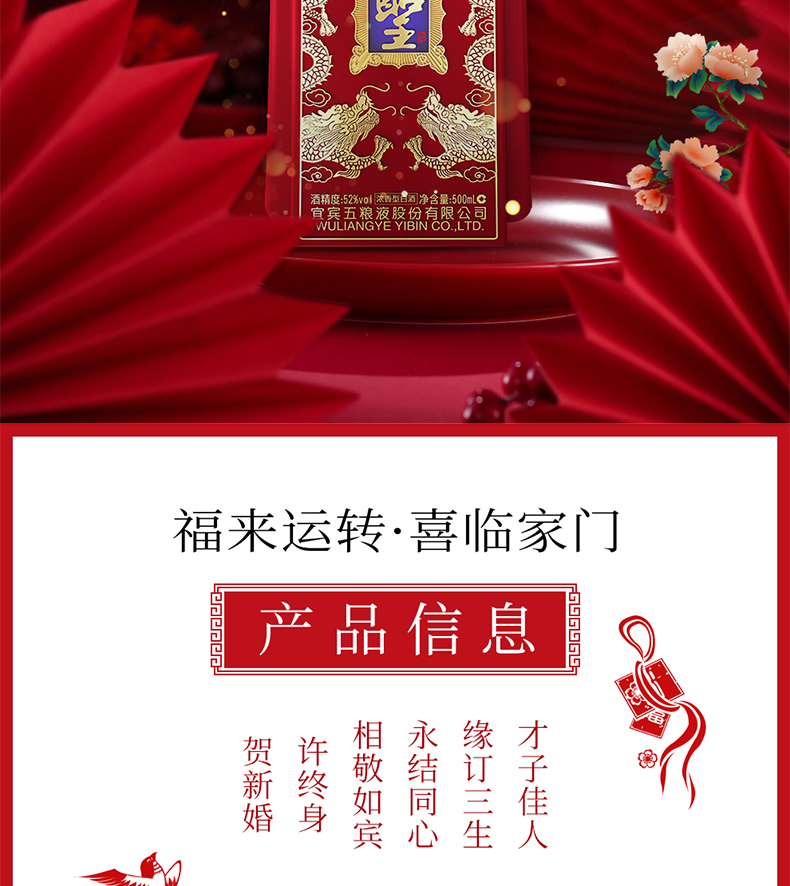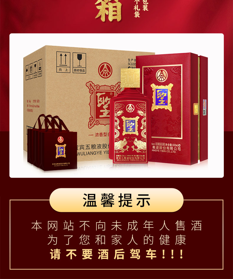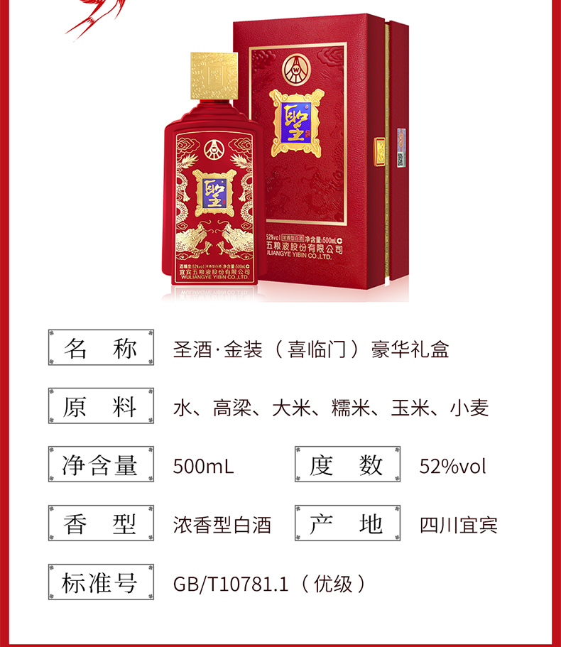 五粮液 股份 圣酒喜临门 浓香型52度 白酒 500ml*6瓶/箱 红色(单位:箱)