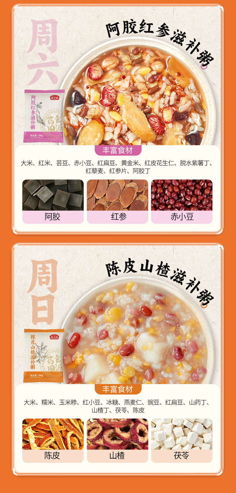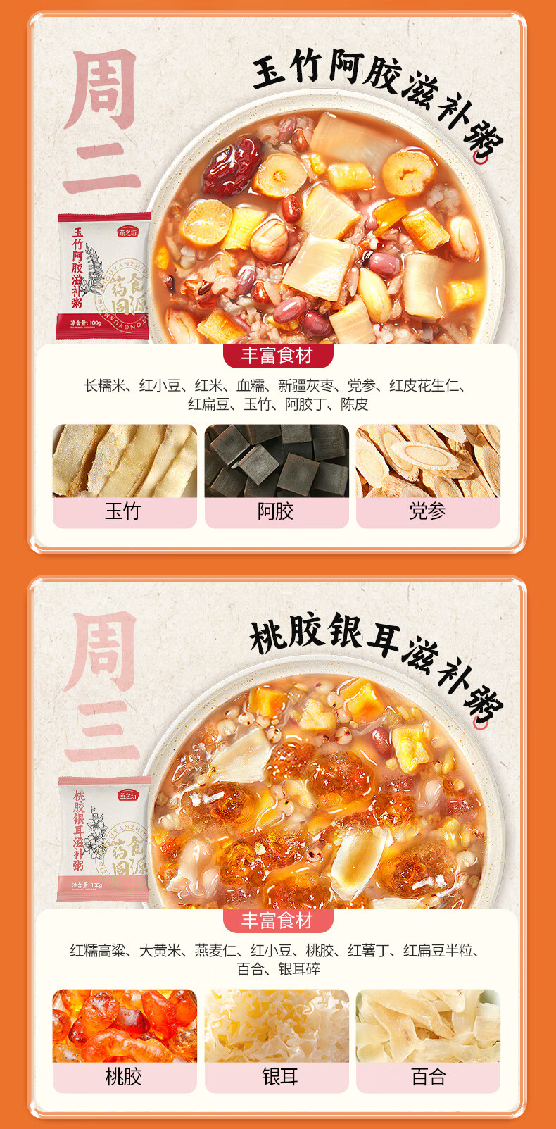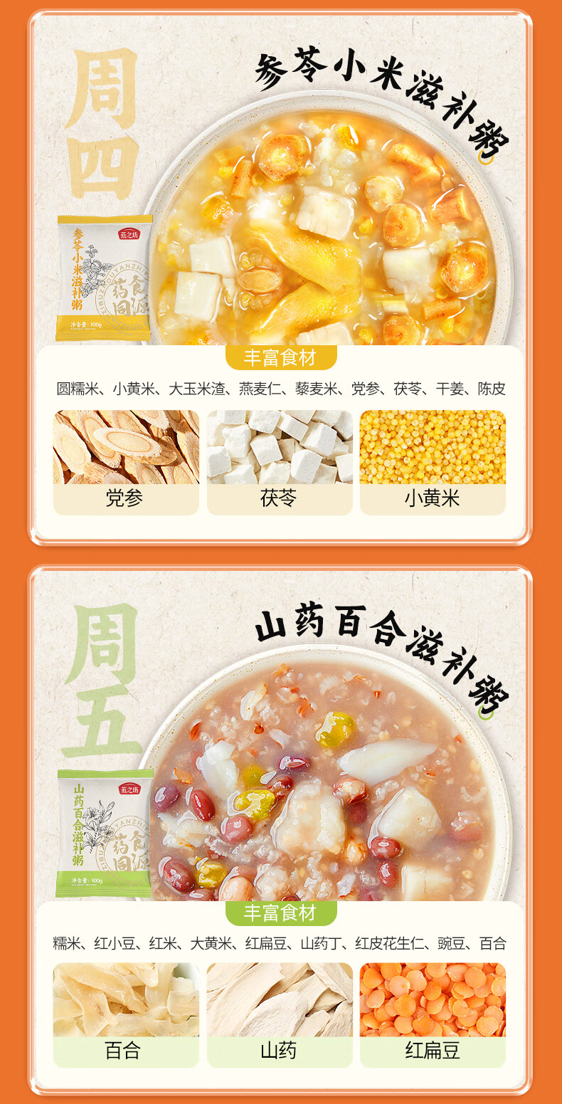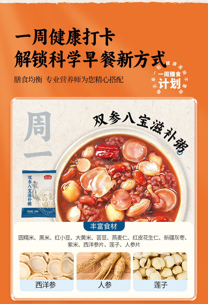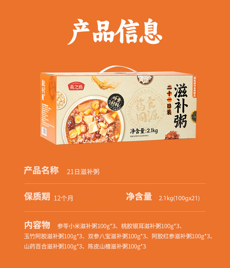 燕之坊 药食同源食滋补粥 21日滋补粥 2.1kg*1提(100g*21袋) 橙色(单位:盒)