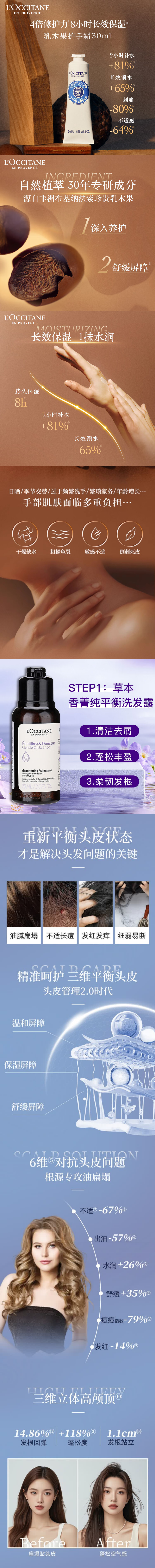 欧舒丹(L'OCCITANE) 乳木果经典护手霜+平衡洗发水 组合 30ml+75ml 本白色(单位:套)