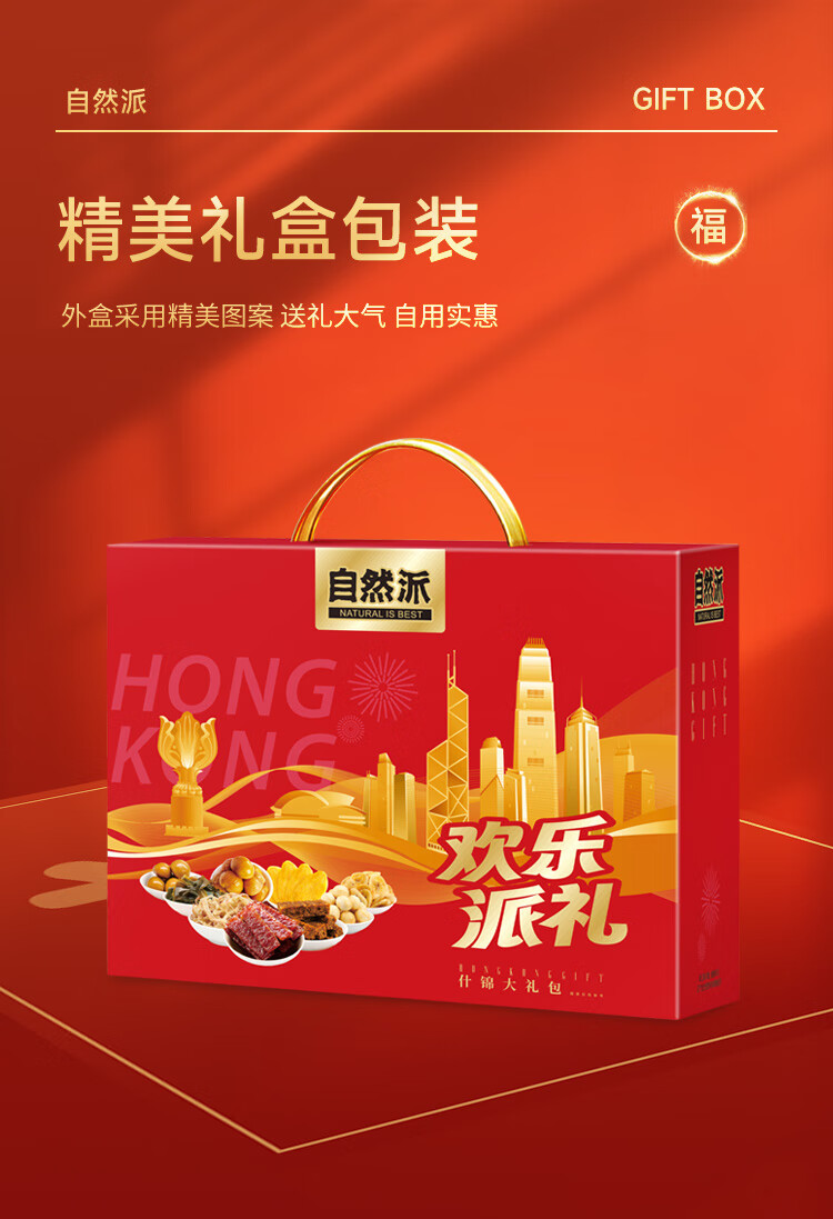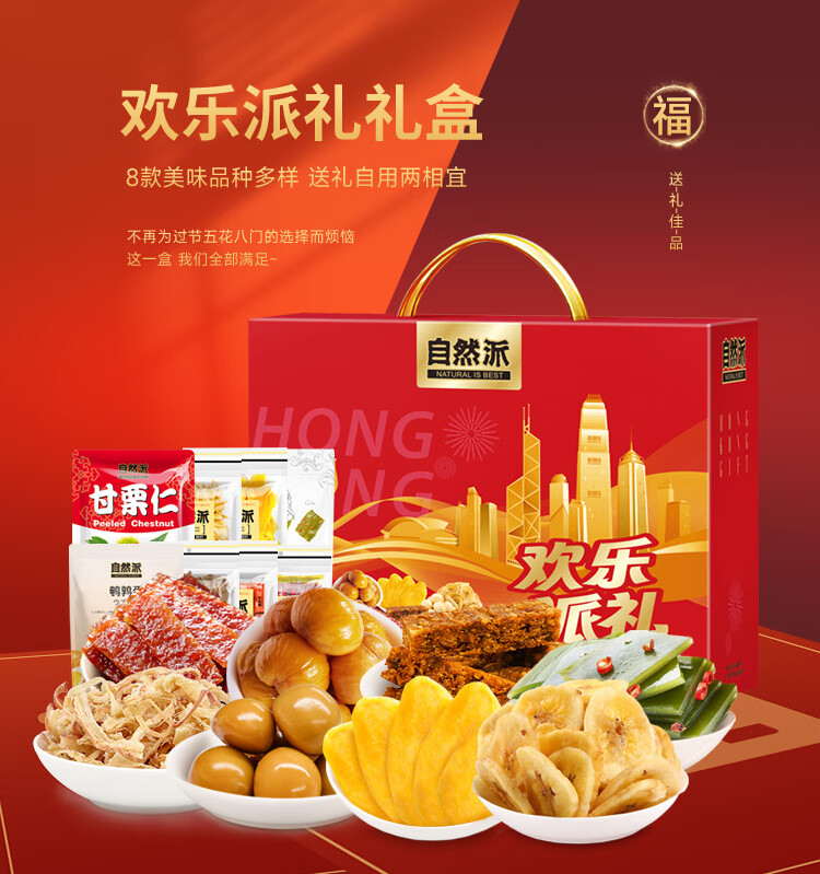 自然派 肉肉零食自欢乐派 礼盒 893g 红色(单位:盒)