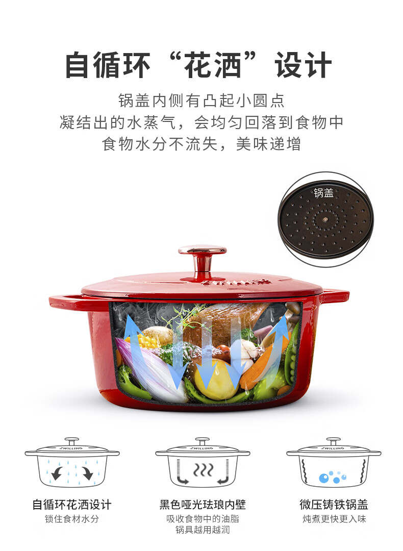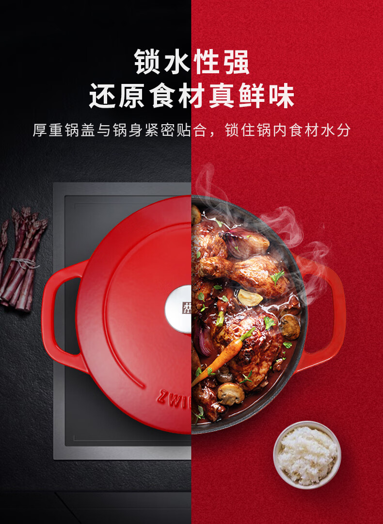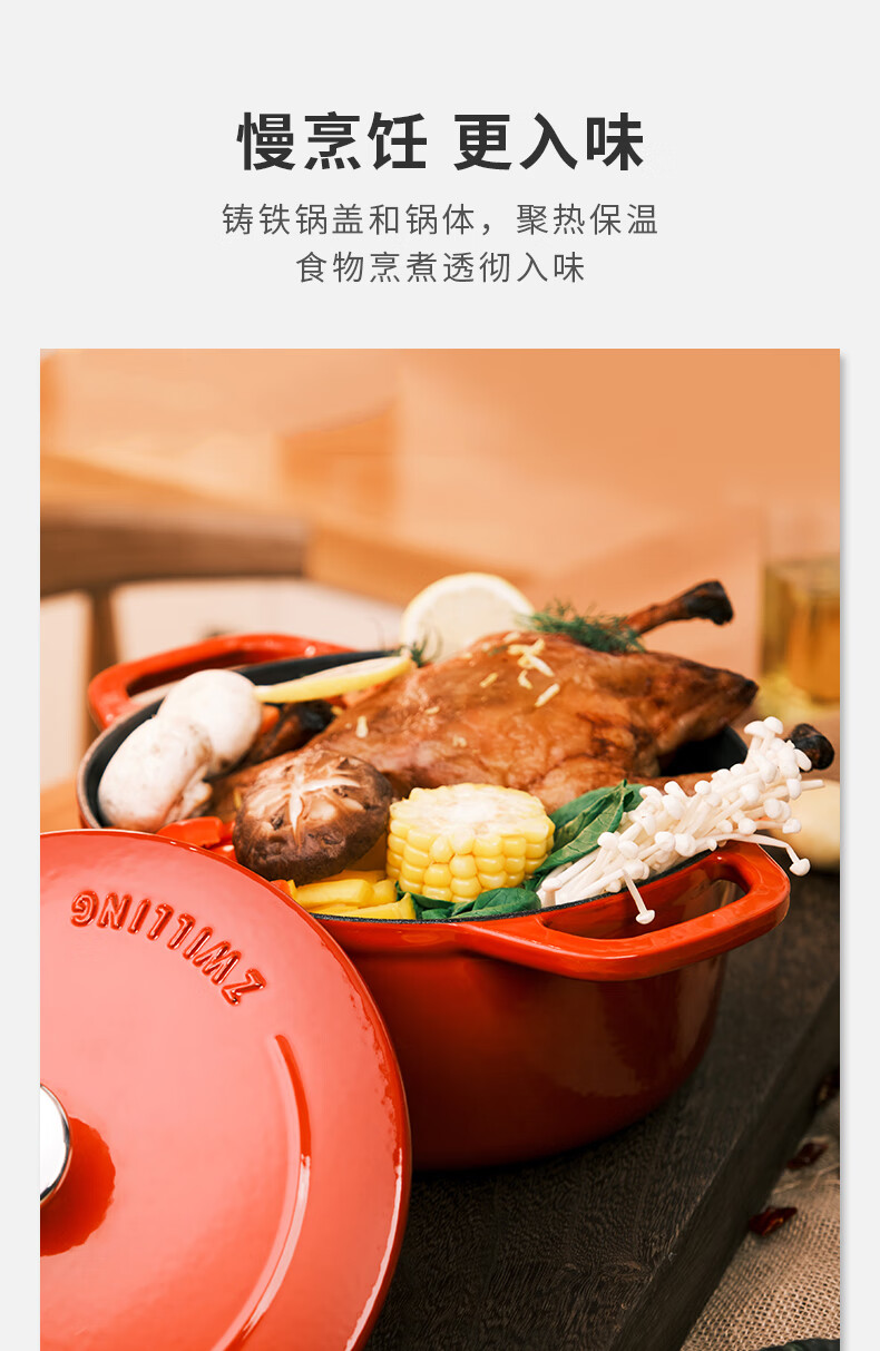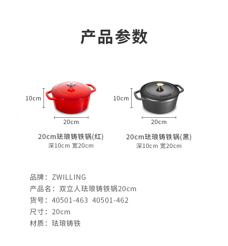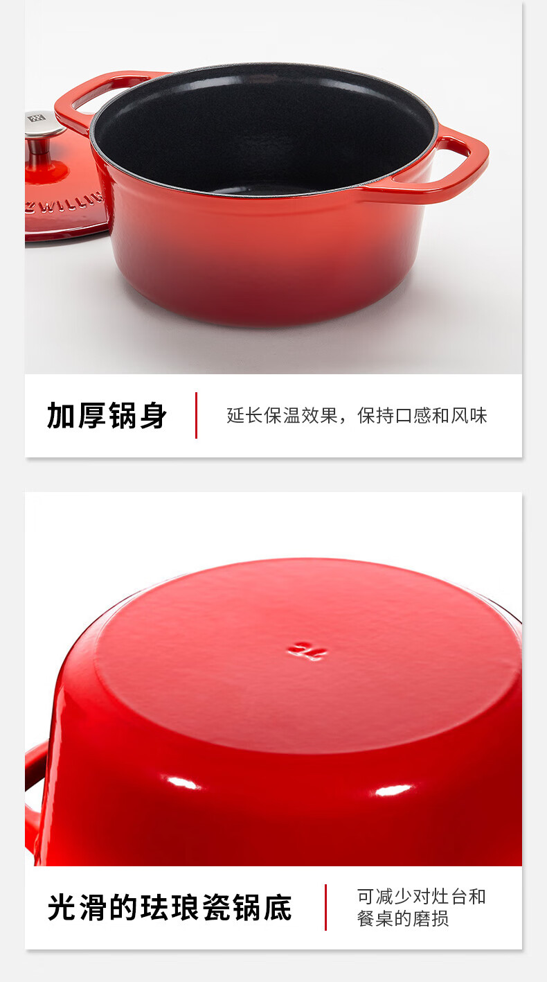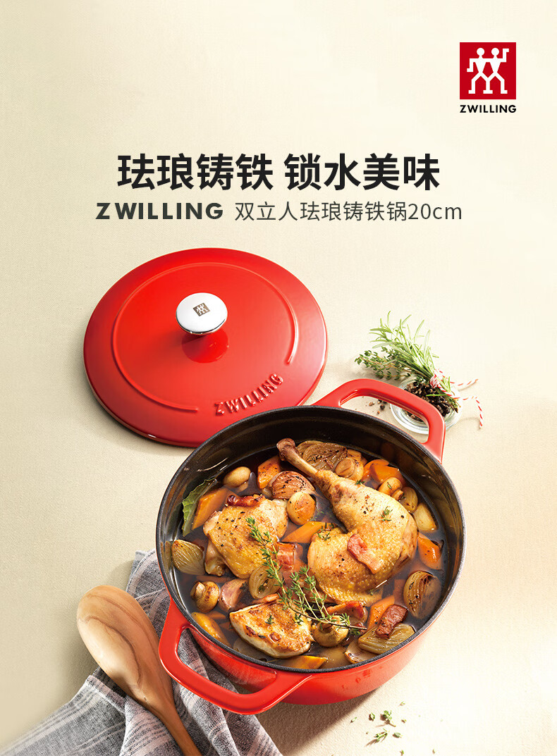 双立人(ZWILLING) 珐琅铸铁锅电磁炉燃气通用 40501-463G 20cm 红色(单位:个)