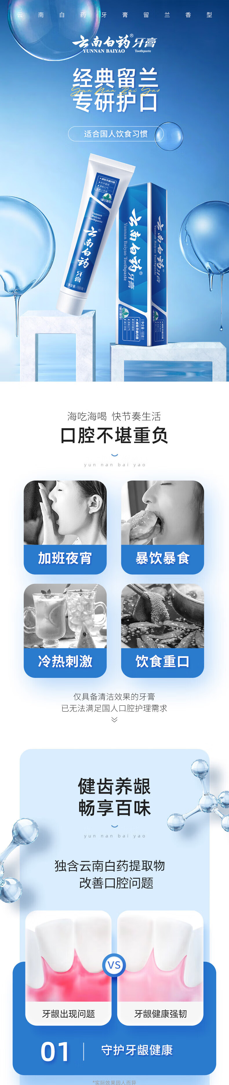 云南白药(YUNNANBAIYAO) 益生菌清新口气牙膏 薄荷香型 65g*1支 混色(单位:支)