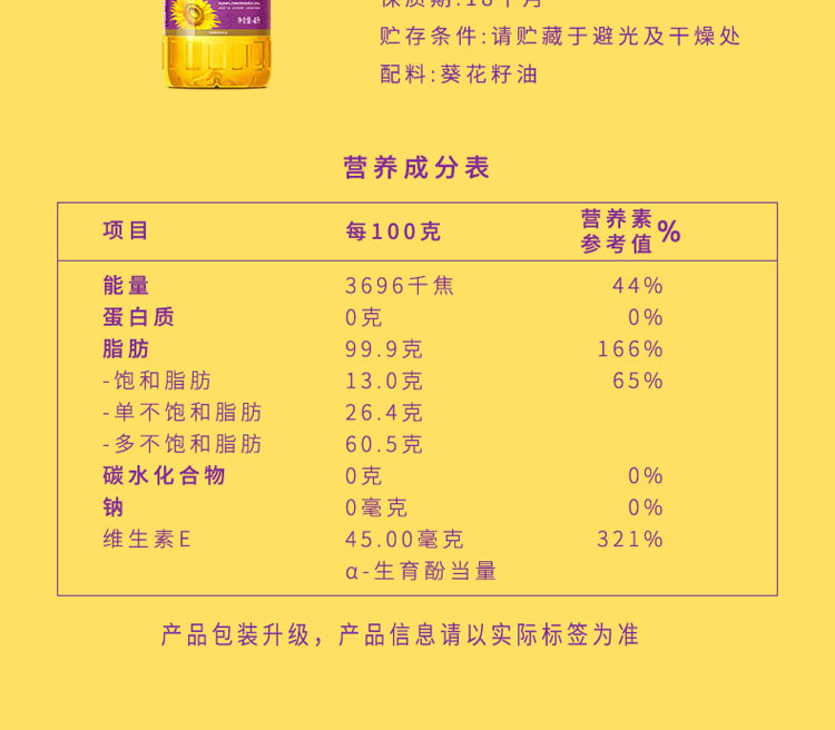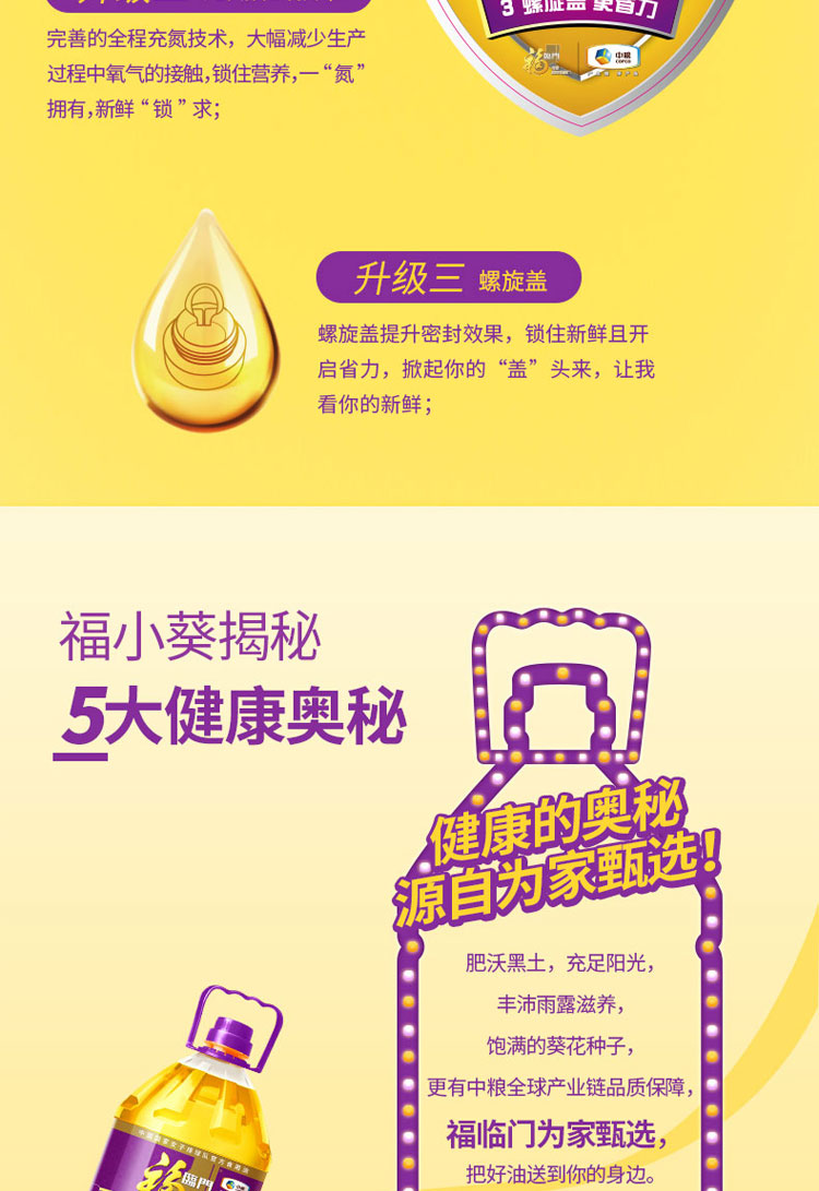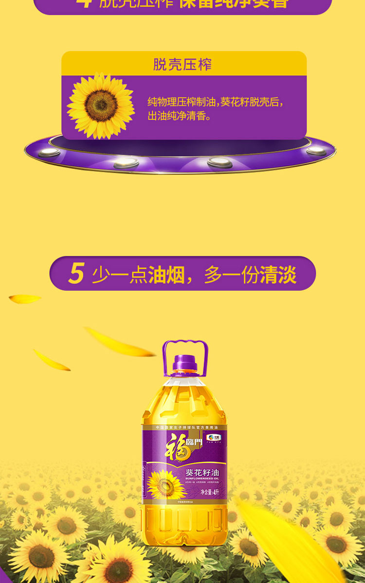 福临门 压榨一级 葵花籽油 4L 黄色(单位:桶)