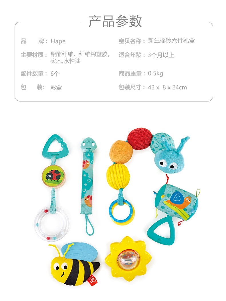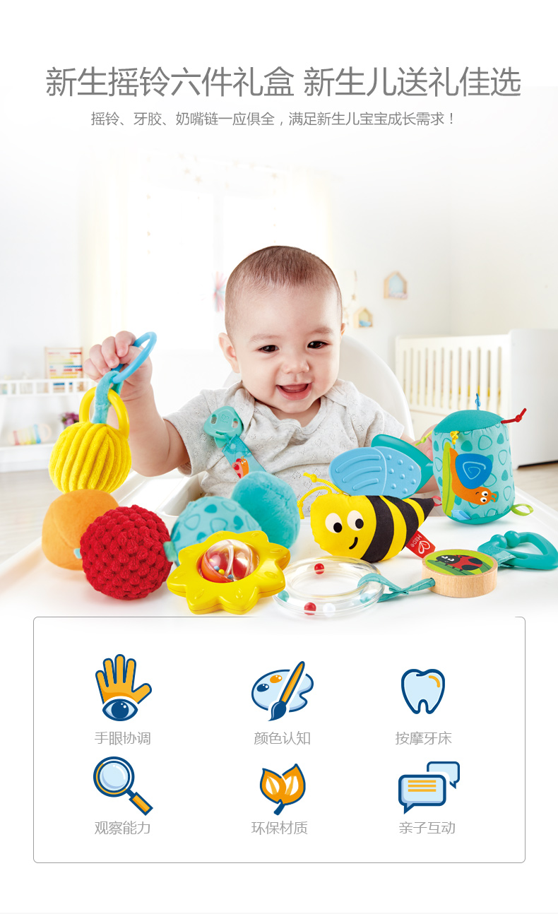 Hape(德国)儿童玩具0-1-3岁宝宝音乐启蒙摇铃牙胶(单位:套) E8444