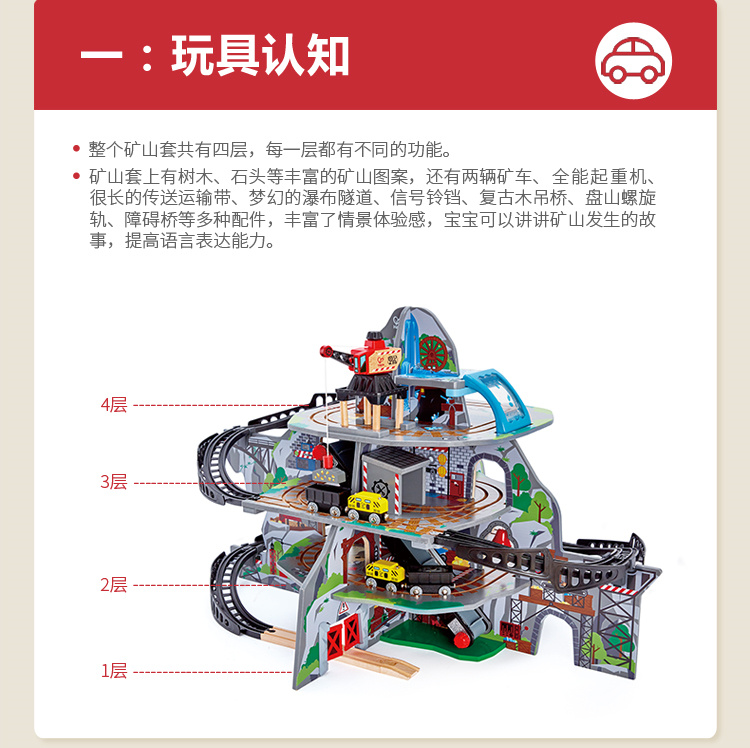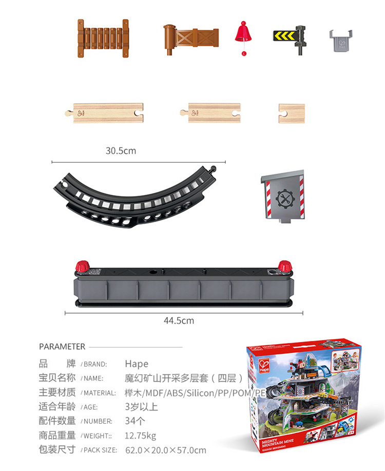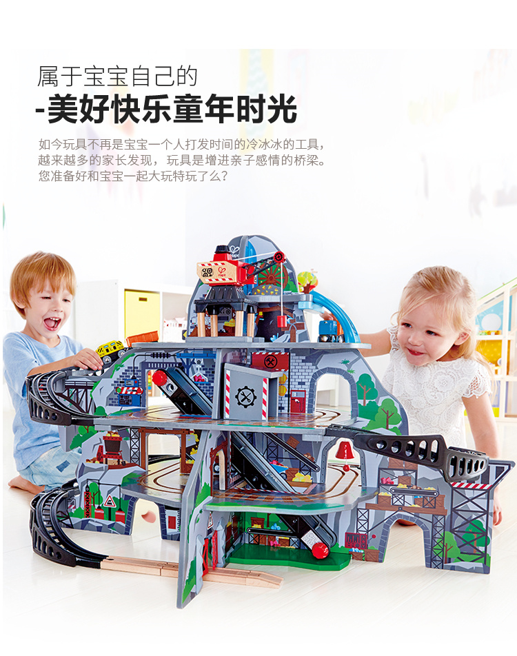 Hape(德国)儿童轨道玩具拼搭拼插早教玩具亲子互动火车轨道(单位:套) 魔幻矿山开采多层套E3753