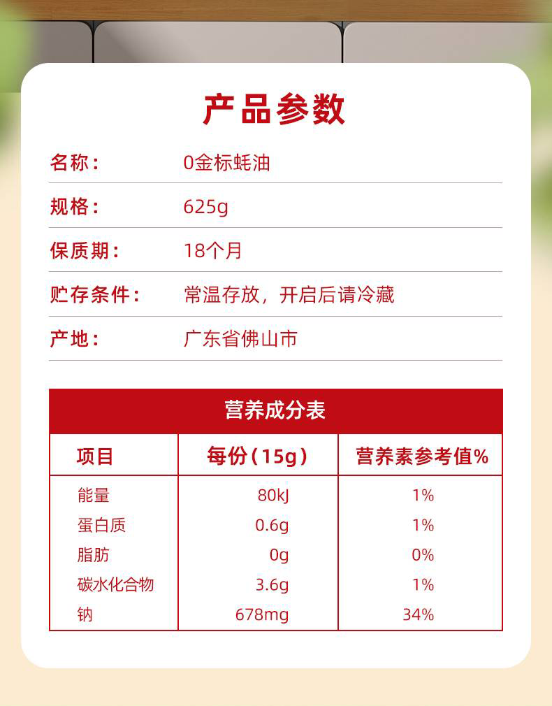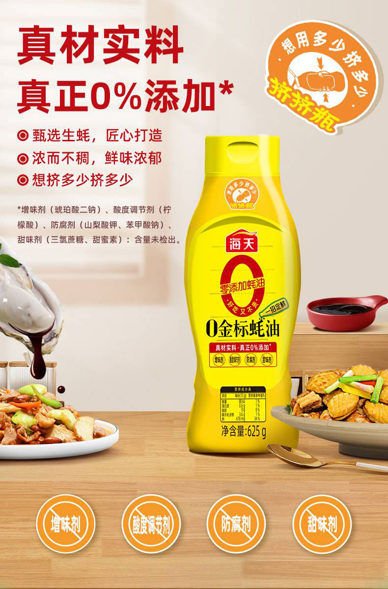 海天0金标蚝油625g(中华老字号)瓶 黄色