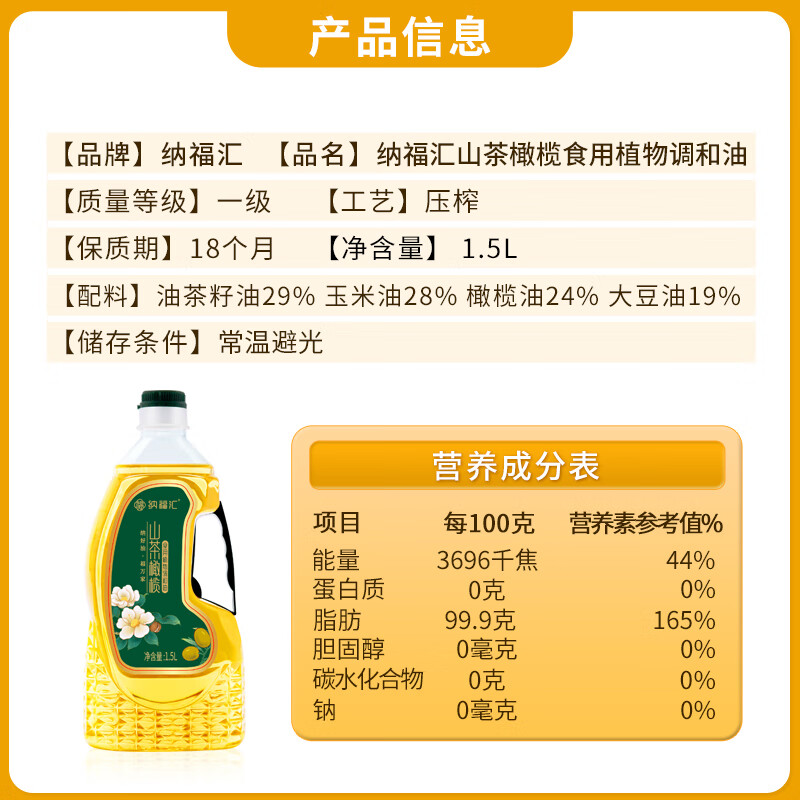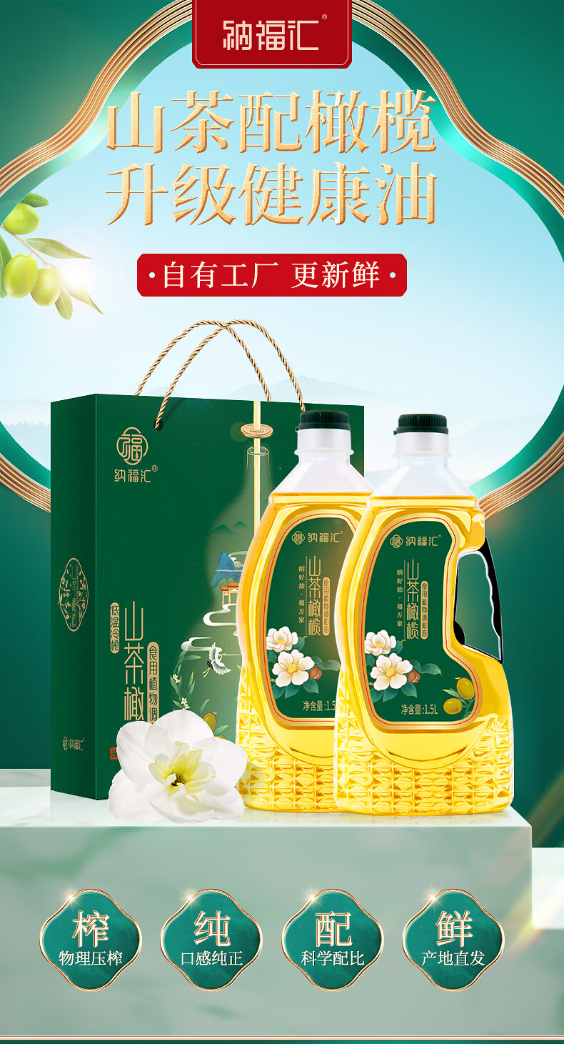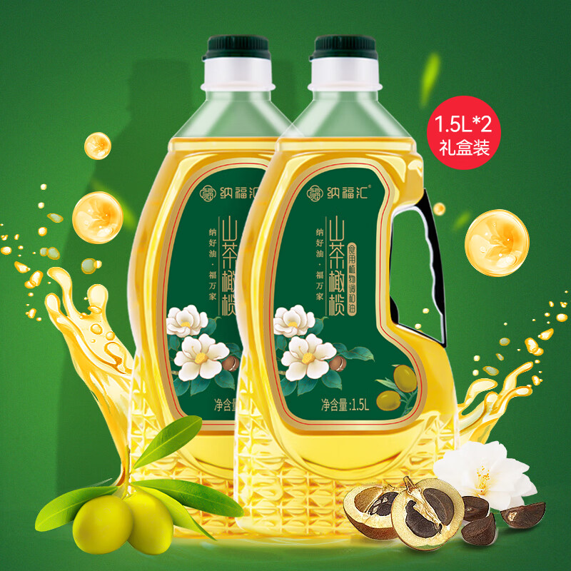 纳福汇山茶橄榄油3L(1.5L*2)物理压榨调和油非转基因植物油礼盒装(单位:盒) 绿色