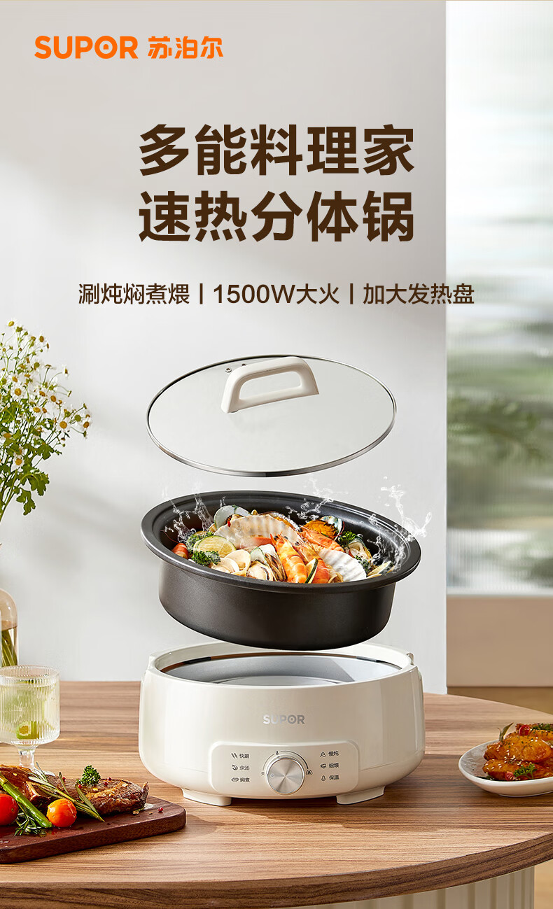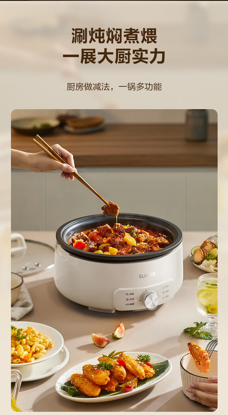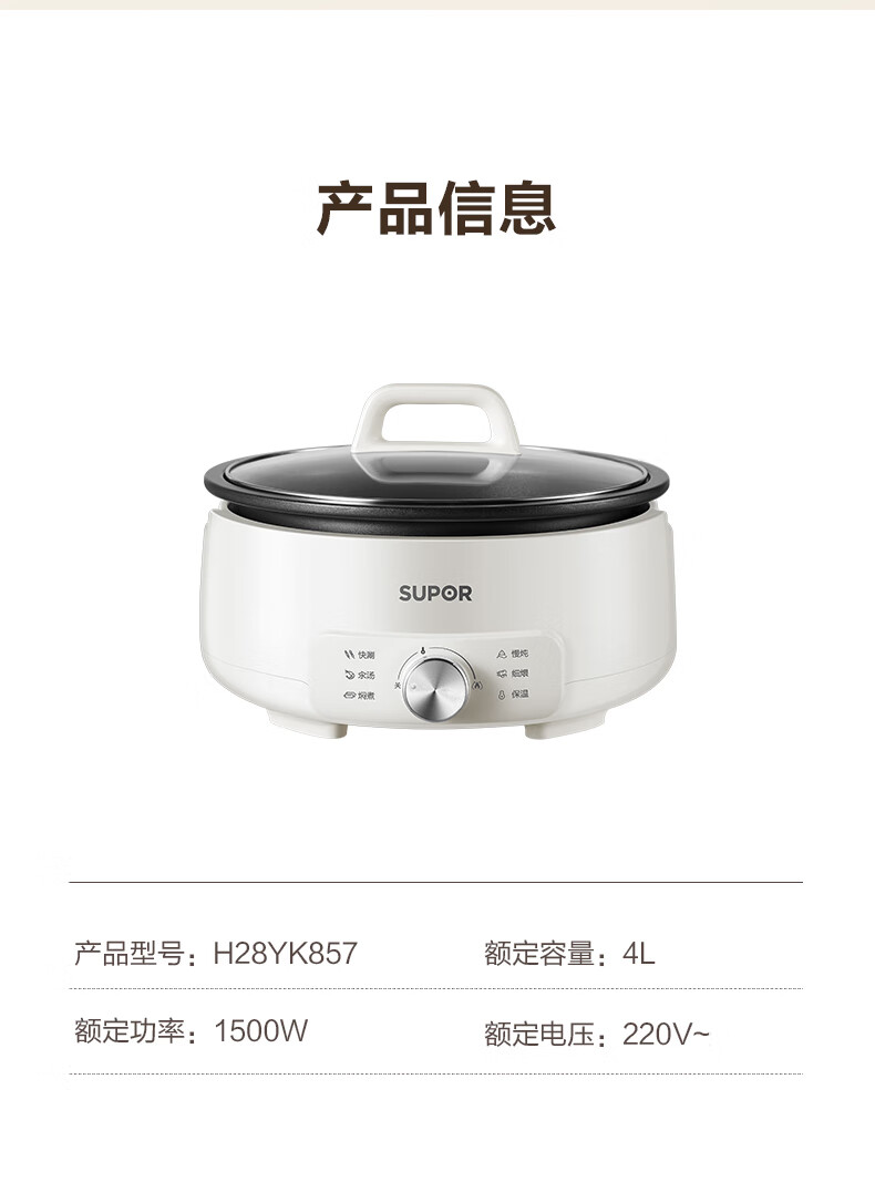 苏泊尔(SUPOR)电火锅4L电热锅 多用途锅H28YK857/台 白色