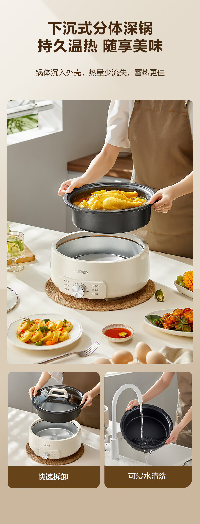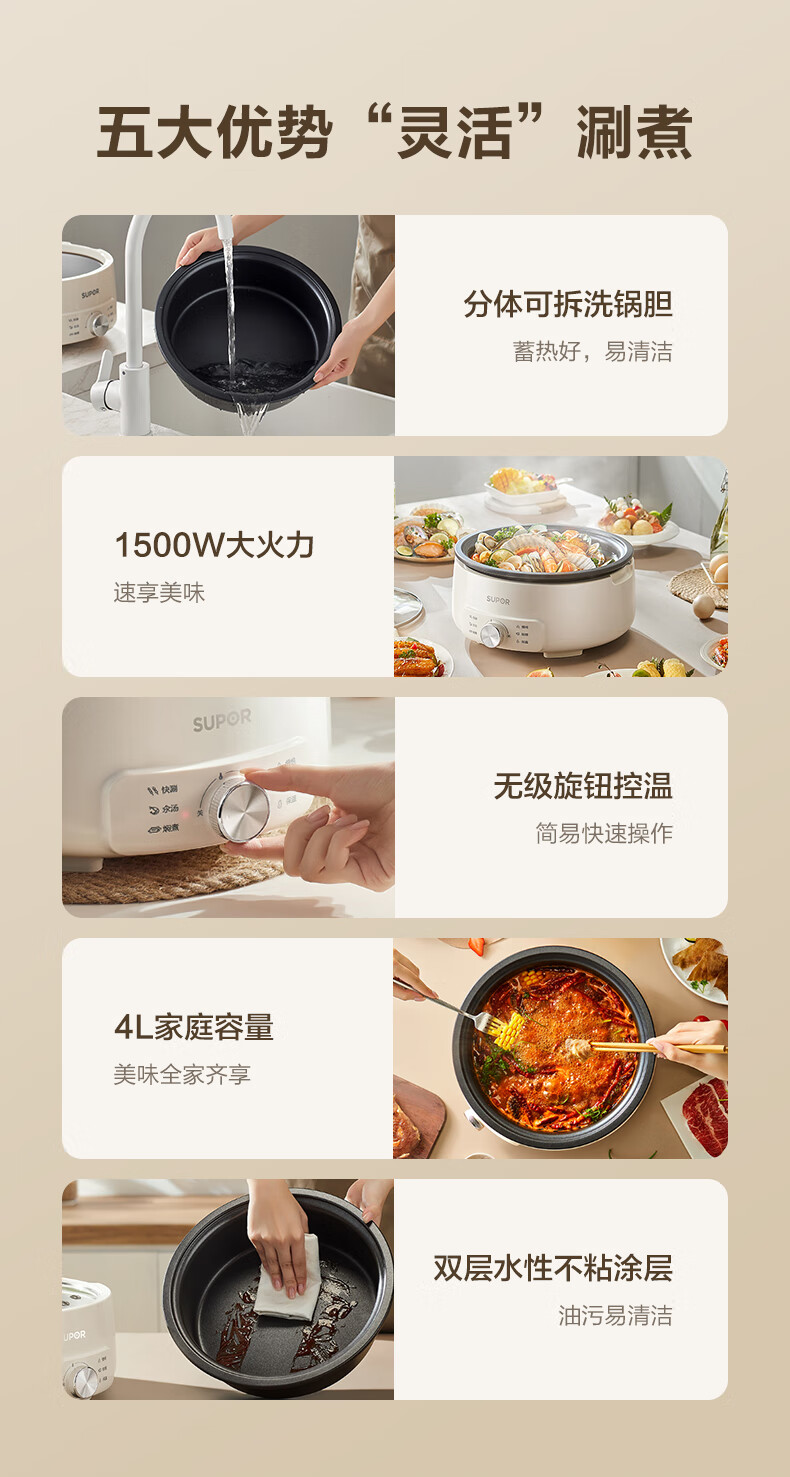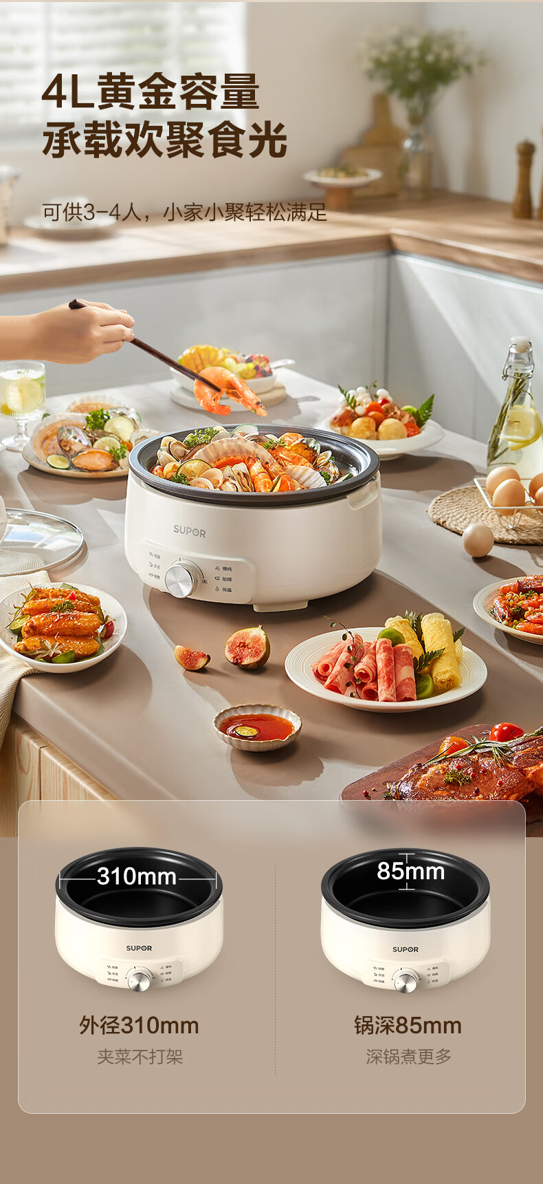 苏泊尔(SUPOR)电火锅4L电热锅 多用途锅H28YK857/台 白色
