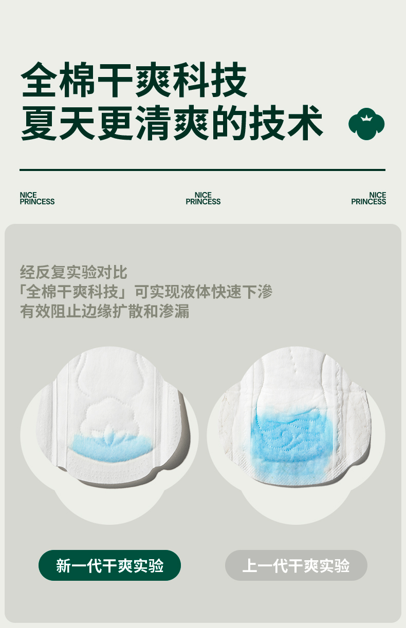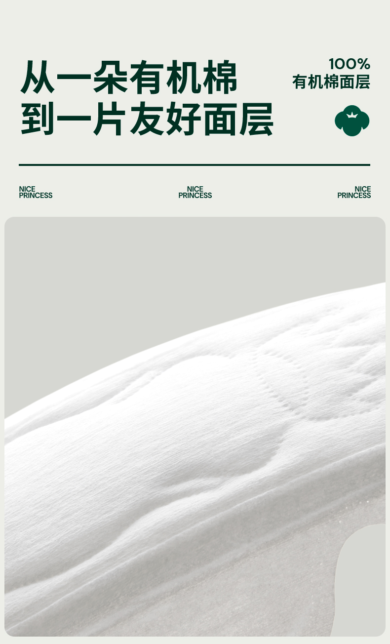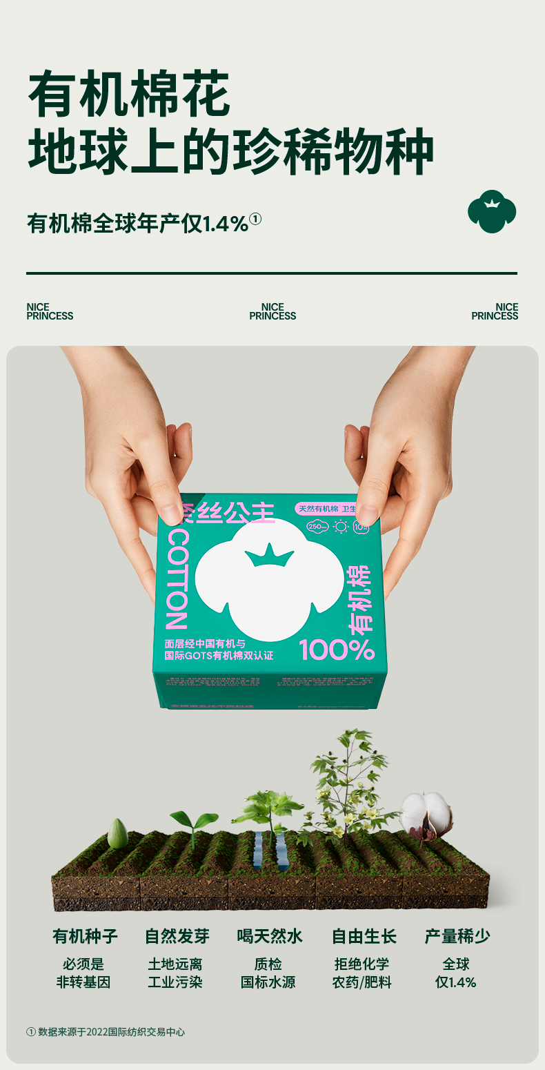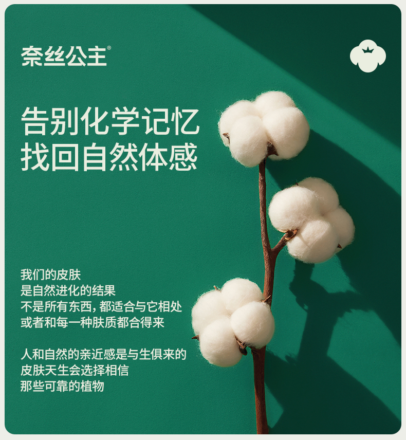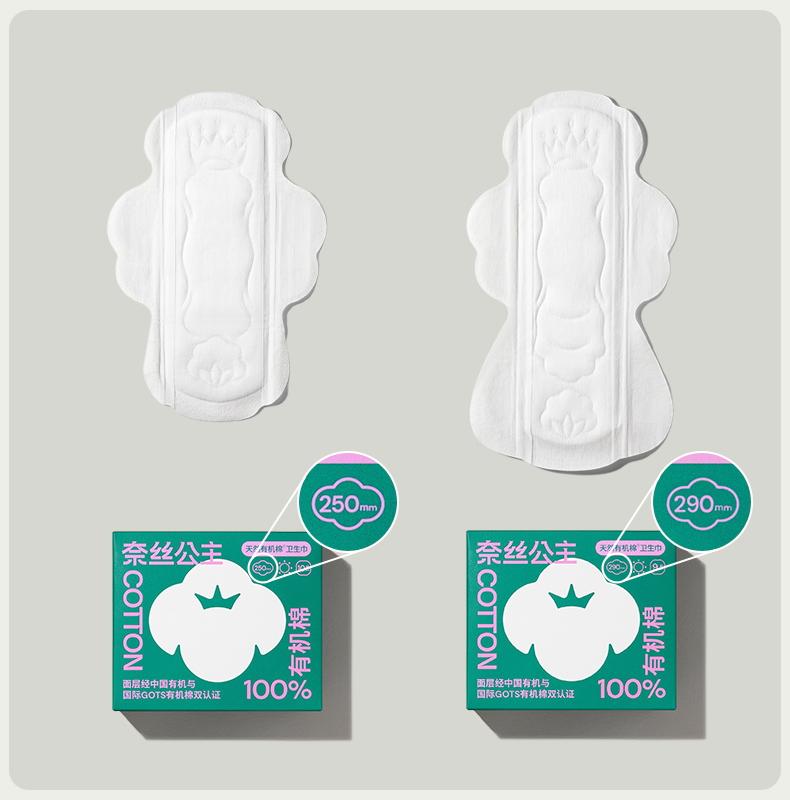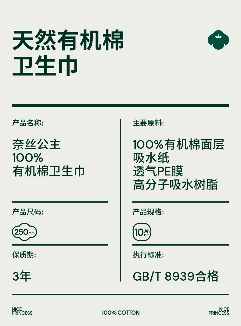 全棉时代奈丝公主100%有机棉系列卫生巾250mm 10片/盒 4盒 绿色