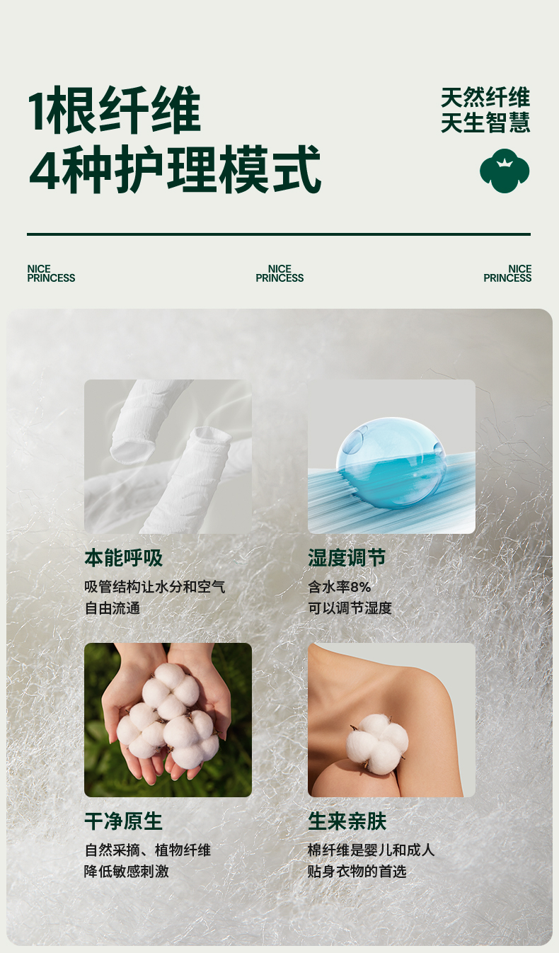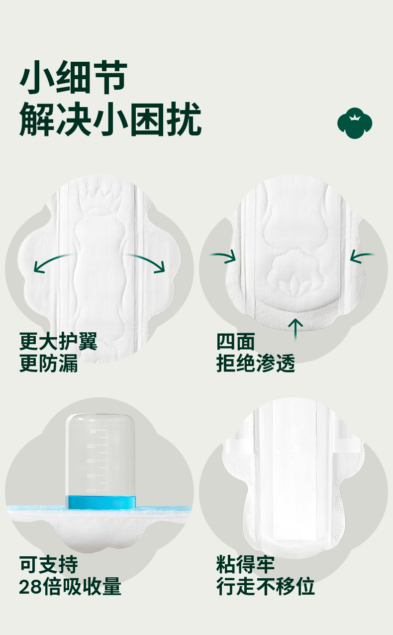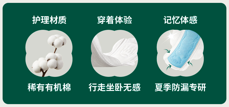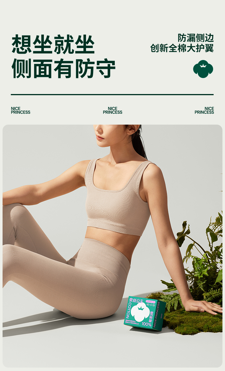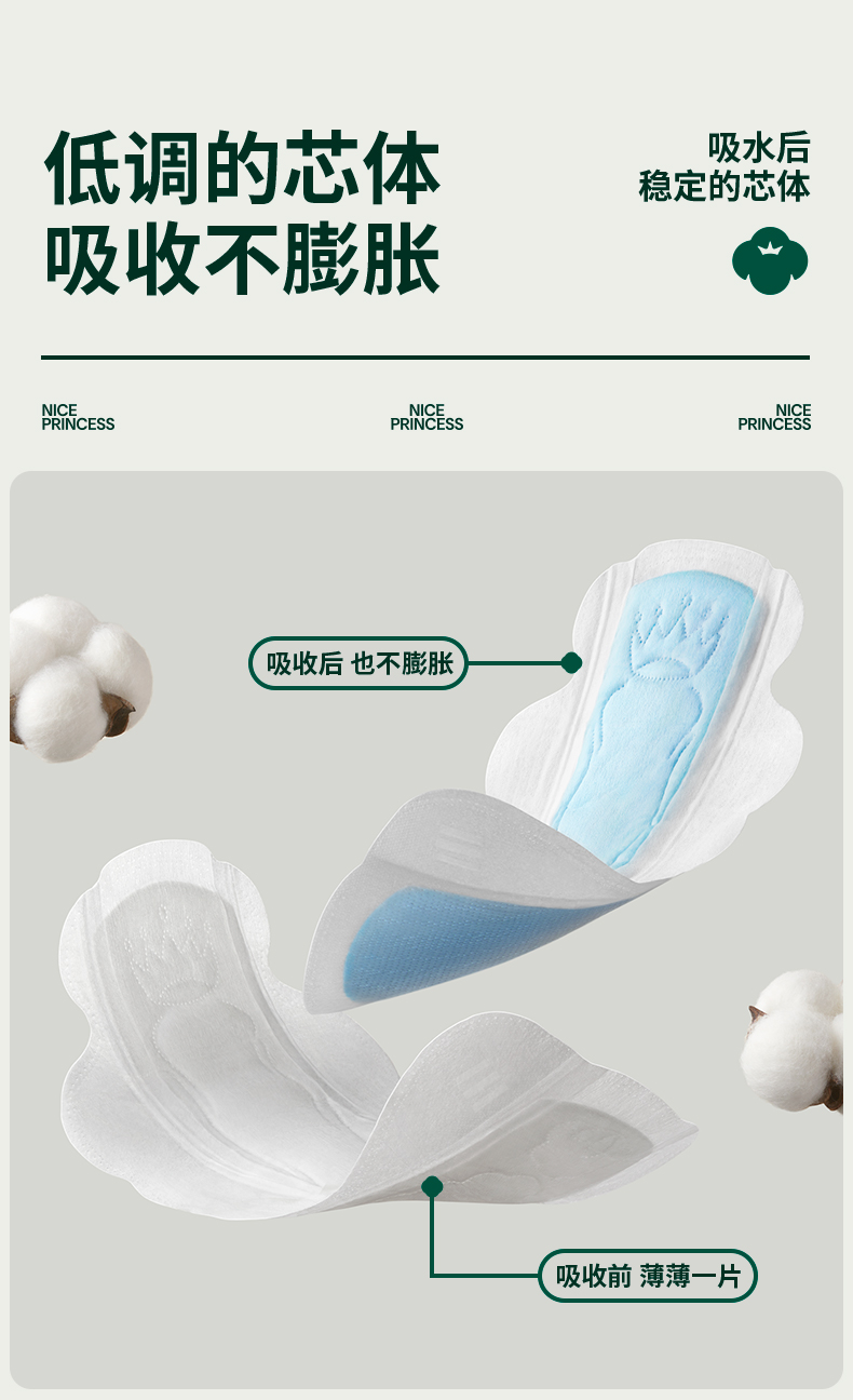 全棉时代奈丝公主100%有机棉系列卫生巾250mm 10片/盒 4盒 绿色